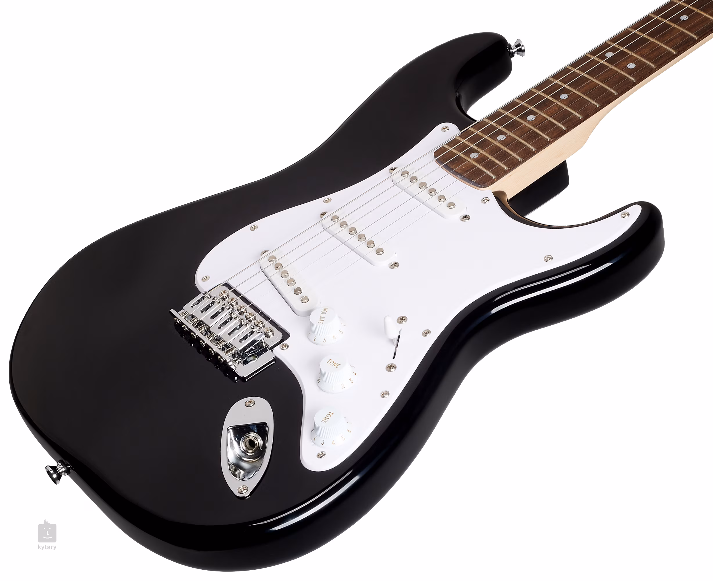 A hangszer nyárfa testét fényes poliuretán lakk borítja. A juhar nyak egy indiai babér fogólapra van ragasztva, huszonegy Medium Jumbo bunddal. A tájékozódást a klasszikus fehér pozíciós pontok segítik. Egy hangerő-potenciométer és két hangszín-potenciométer szolgál a hangkorrekcióra, a hangszedők közötti váltás pedig egy ötállású kapcsolóval történhet. A Stratocaster gitárok hagyományos megjelenését a krómozott hardver, a Die-Cast hangolókarok, a fehér koptató és a cég logója a fejlécen egészíti ki.