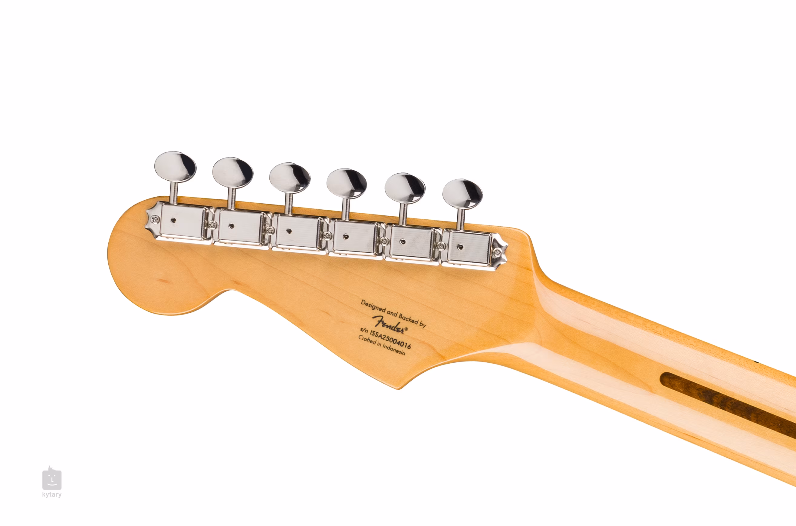 Az 1950-es évek Stratocasterének velejárója a három single-coil hangszedő hangja és hangérzete, itt kifejezetten Fender Designed hangszedők Alnico mágnessel. A hangzás karakterét a hangerő-potenciométerekkel, a hangszínszabályzóval és az ötállású hangszedő kapcsolóval állíthatod be. A húrokat a cég vintage stílusú hangológépeibe és - Stratocasterhez szokatlan módon - egy masszív, acélnyergekkel ellátott "string-through-body" fejrészbe szerelték. A stílusos kivitelezést nikkelezett hardverek és egyrétegű pickguard (pergamen) emeli ki.