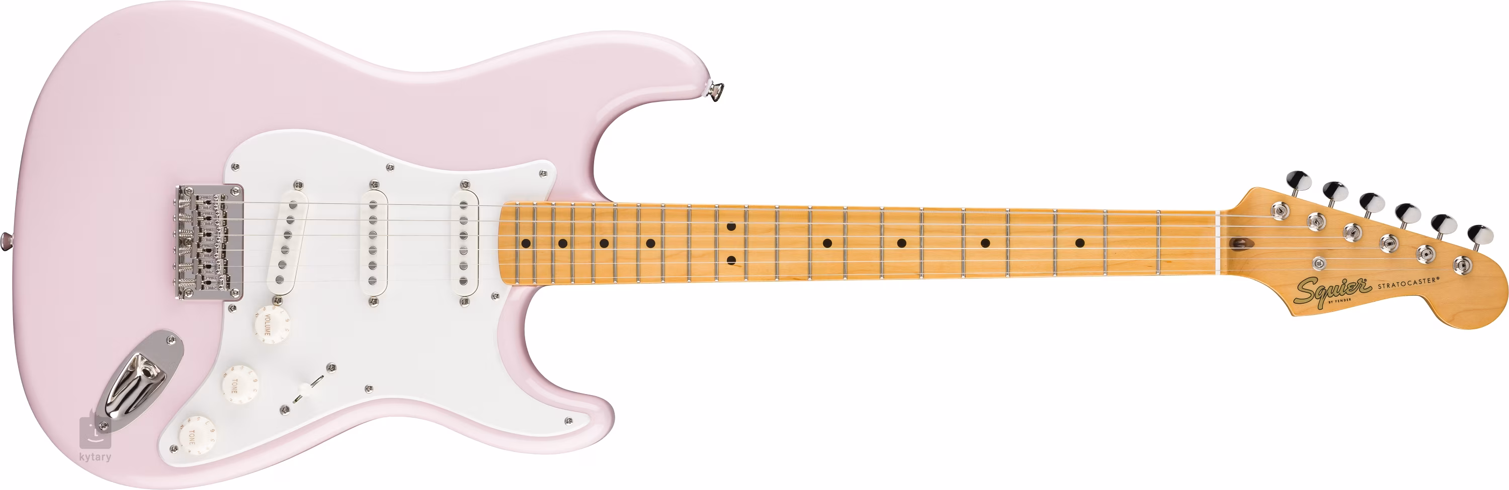 A Classic Vibe 50s Stratocaster HT MN Shell Pink egy elektromos gitár, amelyet az 1950-es évek Fender Stratocaster modelljei ihlettek. A gitár nyárfa testét poliuretán lakkozás és Shell Pink fényezés díszíti. A keskenyebb C-profilú, csavaros nyak és a fogólap juharból készült, a fogólapon való tájékozódást fekete pozíciós pontok segítik.