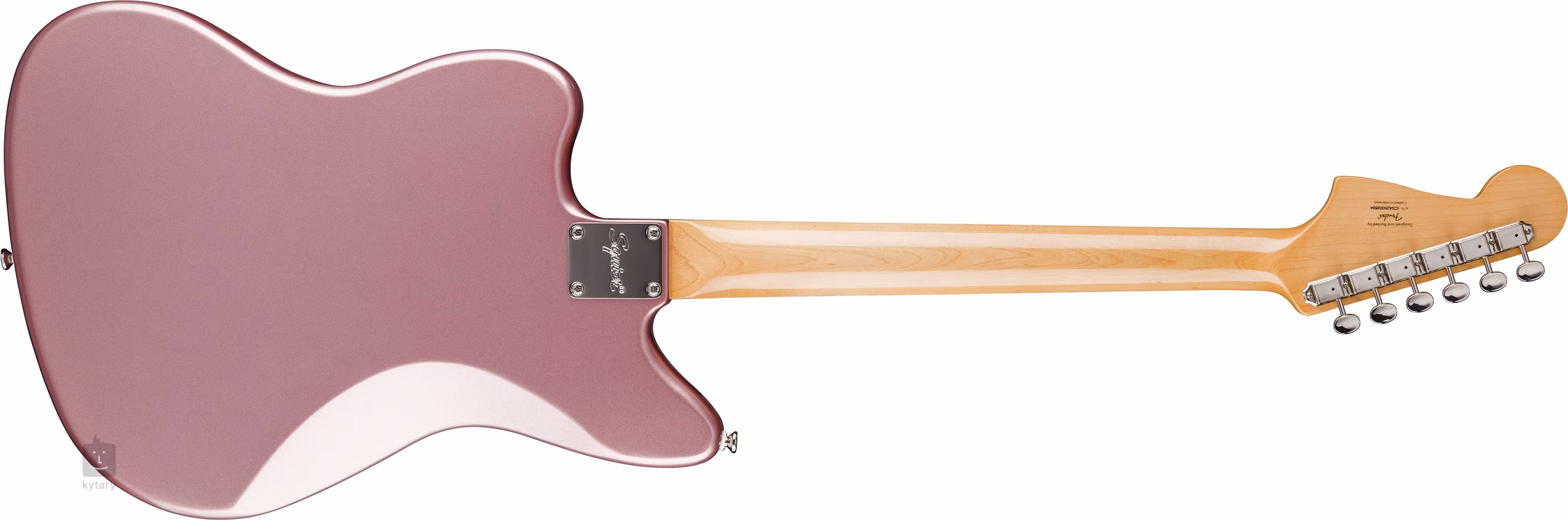A húrok vintage lebegő tremolóba és céges hangolókarokba vannak szerelve. A stílusos kivitelezést négyrétegű teknőspáncél-imitációval ellátott pickguard, Burgundy Mist színösszeállítás és a Squier Jazzmaster logó a fejlécen emeli ki.