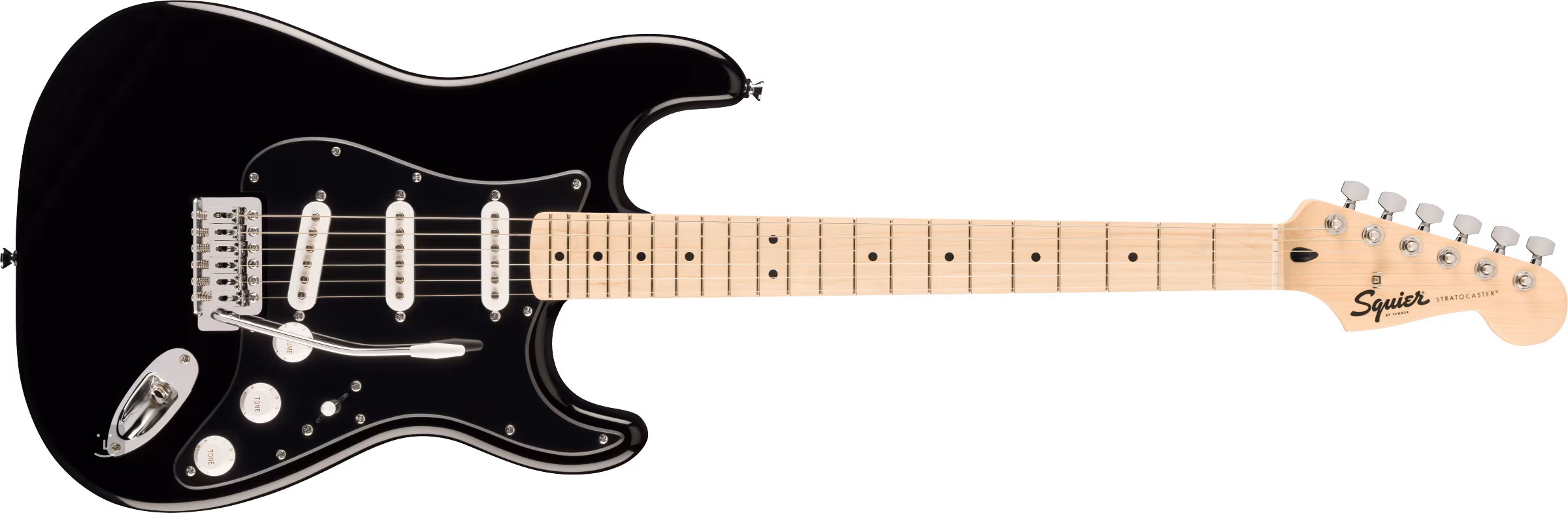 A Fender Squier Sonic Stratocaster Black a Fender Special Run (FSR) különkiadásából egy megfizethető, sallangmentes elektromos gitár, amely kezdő gitárosok számára is alkalmas. Fekete fényes lakkozással bevont nyárfa testtel, juhar nyakkal és fogólappal rendelkezik. A fogólap felületét huszonegy Narrow Tall bund és fekete pozíciós pontok tagolják.
