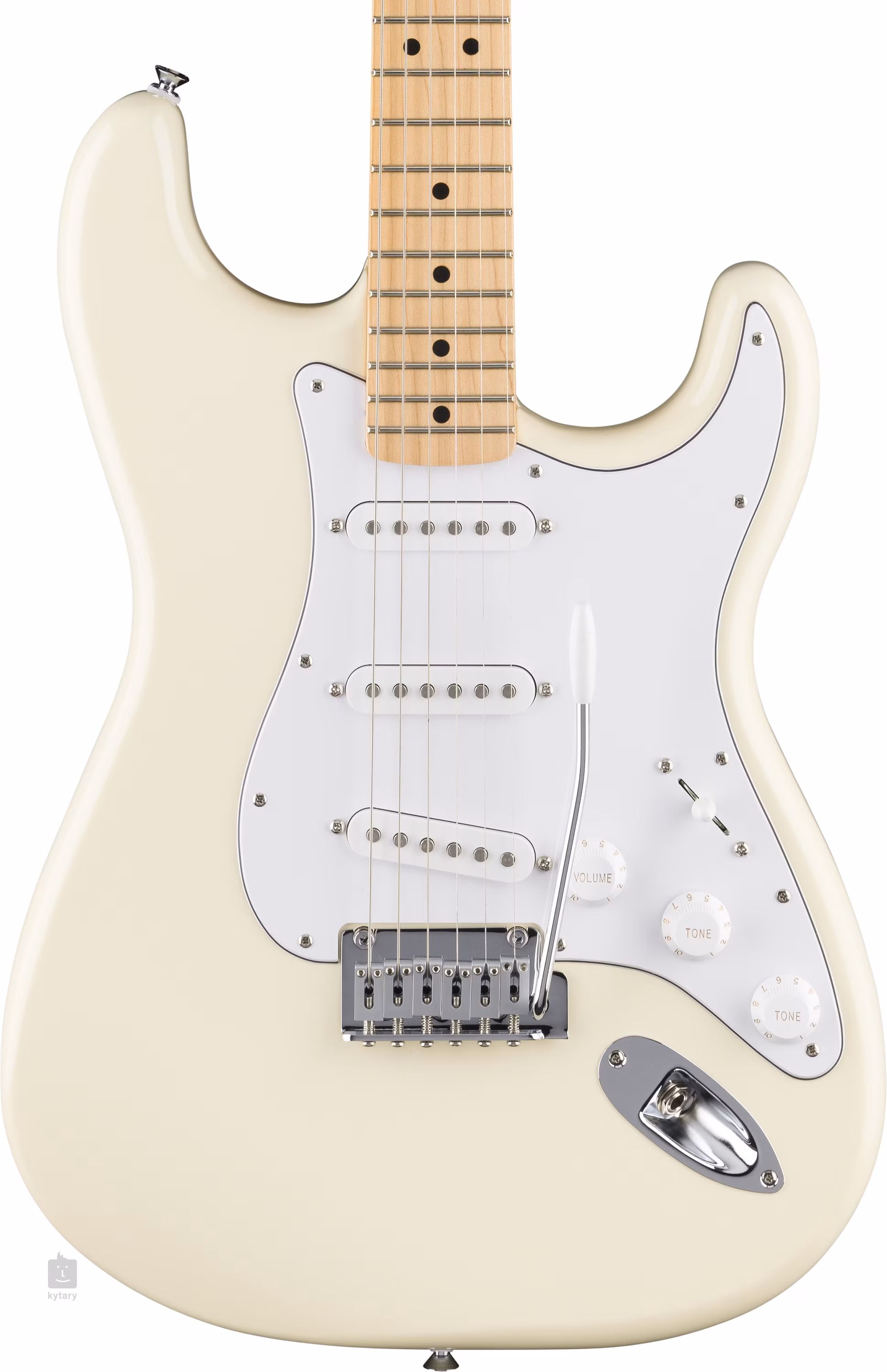 A Fender Standard Series alapmodelljei megfizethető áron kínálnak jó játék tulajdonságokkal rendelkező elektromos gitárokat, időtálló Fender hangzással és dizájnnal. A Fender Standard hangszerekkel kezdheted meg zenei pályafutásodat. A Standard Stratocaster MN OW elektromos gitár teste nyárfából készült. A kellemes „Modern C” profilú juharfából készült nyakhoz juharfából készült fogólap van ragasztva, amelyen 21 Medium Jumbo méretű fekvő van. A fogólapon a fekete pozíciós pontok segítik a tájékozódást. A három single-coil hangszedő kerámia mágnesekkel és valamivel magasabb kimenettel biztosítja a gitárnak a gyönyörűen tiszta hangzást, amelyet számos zenei stílusban értékelni fog. A hangszínt a hangerő-potméterekkel, két hangszínszabályzóval és ötállású hangszedő-kapcsolóval állíthatja be. A húrok a gyártó saját hangolóműveiben (Fender Standard Cast) és 2 pontos tremolóban vannak rögzítve, krómozott acél nyereggel (block saddles). A stílusos kivitelezést fehér háromrétegű pickguard és a Fender Stratocaster logó a gitár fején hangsúlyozza.