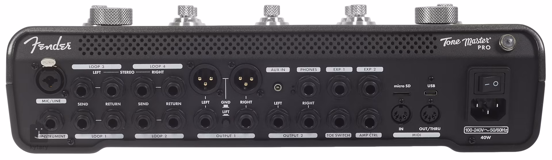 1x Balanced XLR/TRS kombi, 1x Mono, 4x Return (Effects Loop), Jack 3,5 mm TRS (Aux In), MicroSD, USB, MIDI IN, Exp 1, EXP 2, Amp CTRL, Toe Switch