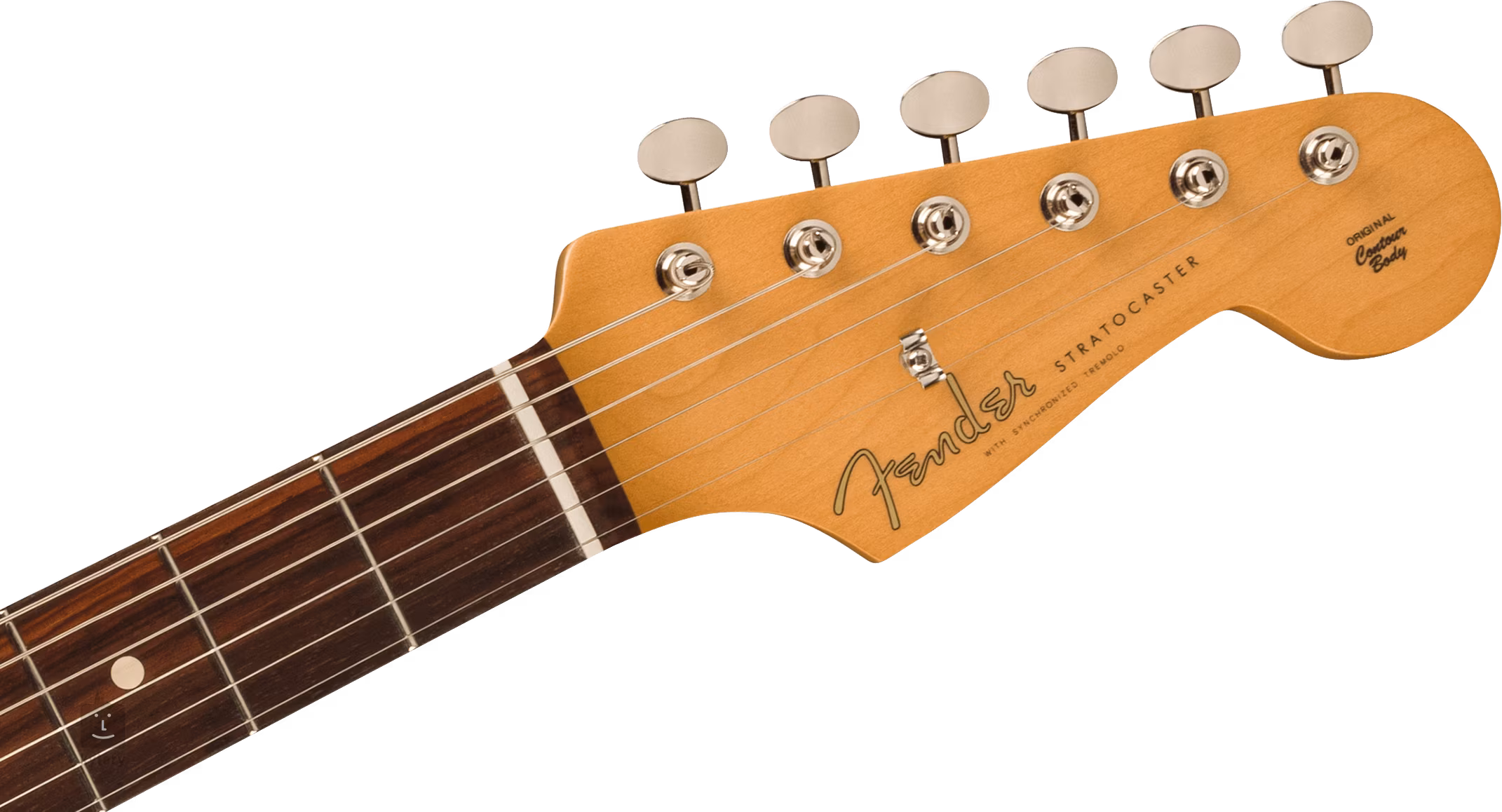 A vintage stílusú 60-as évekbeli hangszedők triója meleg, élénk hangzást ad a gitárnak, egyértelműen elismert Fender DNS-sel. A hang karakterét a szokásos hangerő- és hangszínszabályozókkal és egy ötállású hangszedő kapcsolóval állíthatod be. A húrokat a szintetikus csont fogólapon keresztül a cég vintage stílusú hangolókészülékei és a hatpontos rögzítésű szinkronizált tremolo rögzíti. A stílust a háromrétegű, mentazöld színű pickguard és a Fender logó hangsúlyozza a fejlécen.