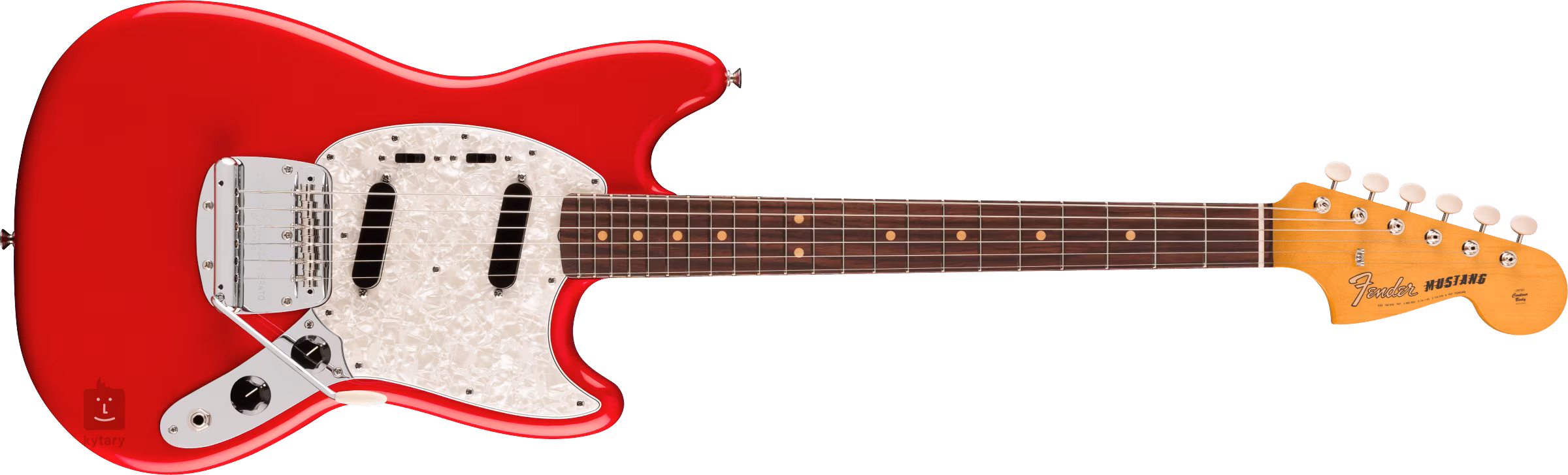 Két Vintage-Style Mid '60s single-coil Mustang hangszedő ad a gitárnak élénk, meleg hangzást, amely egyértelműen a Fender DNS-ét hordozza. A hang karakterét a hangerő- és hangszínszabályzó potenciométerekkel lehet beállítani, a hangszedők között kétállású kapcsolókkal lehet váltani. A húrok a csontból készült nulladik fekvésen keresztül vannak rögzítve a cég vintage stílusú mechanikájához és a Mustang floating tremolóhoz. A stílusos kivitelezést a négyrétegű, imitált gyöngyház (Aged White Pearloid) pickguard hangsúlyozza.