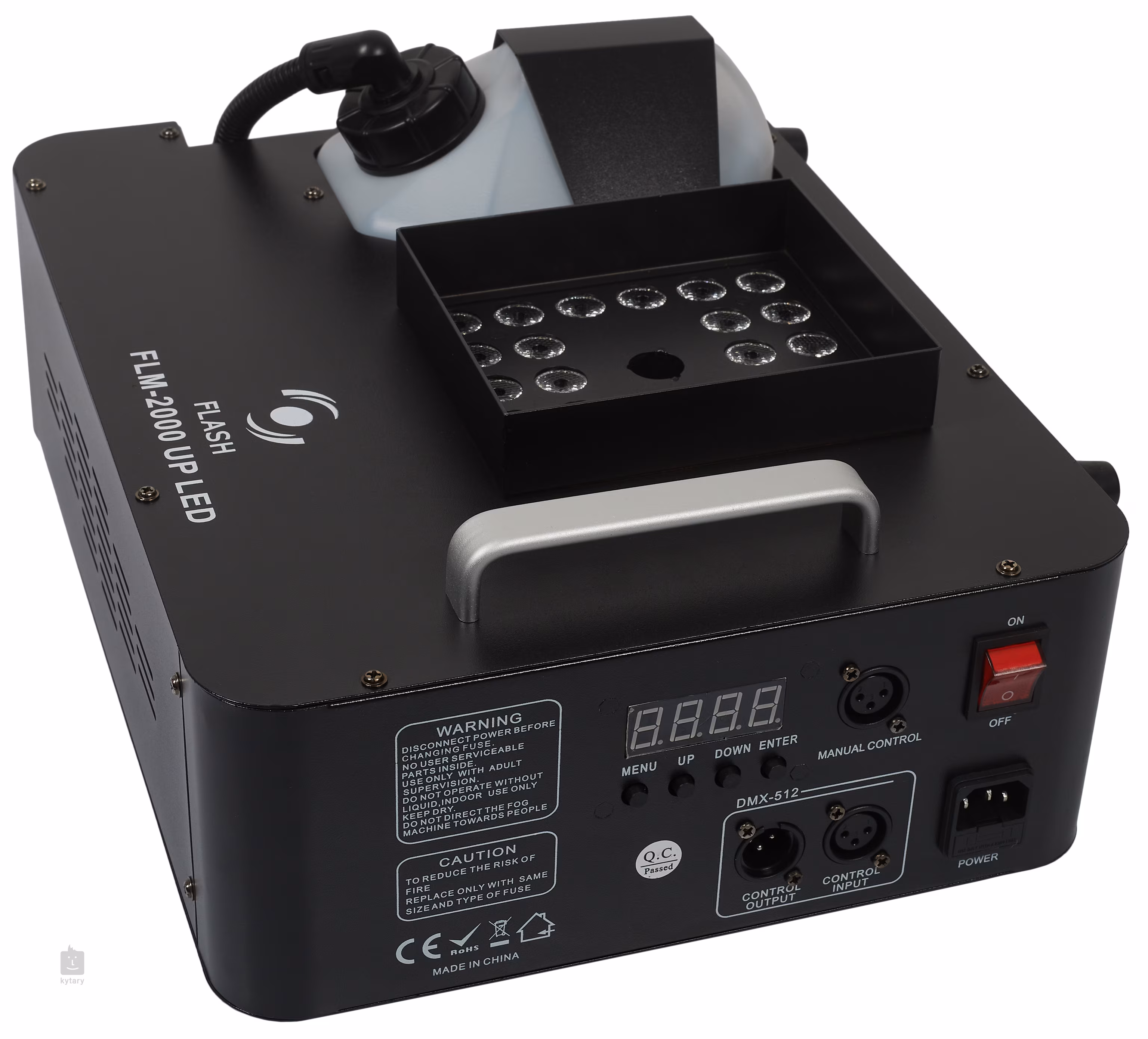 A Flash FLZ-2000 ködgép UP LED + RE egy professzionális ködkészítő, amely segít feldobni bármilyen koncertet, partit, fotózást vagy más különleges eseményt. Az 1 literes térfogatával és 2000 W-os teljesítményével gyorsan képes akár 50 m³-es teret is megtölteni, és az RGB LED-ekkel ellátott háttérvilágításnak köszönhetően színes ködhatás létrehozását teszi lehetővé. Első indításkor 5-7 percig tart a felmelegedés. A készülék vezetékes DMX-kapcsolaton keresztül és 20 m-es hatótávolságon belül távolról is vezérelhető. A ködképző felépítése robusztus, de kompakt - a teljes súlya 3 kg.
