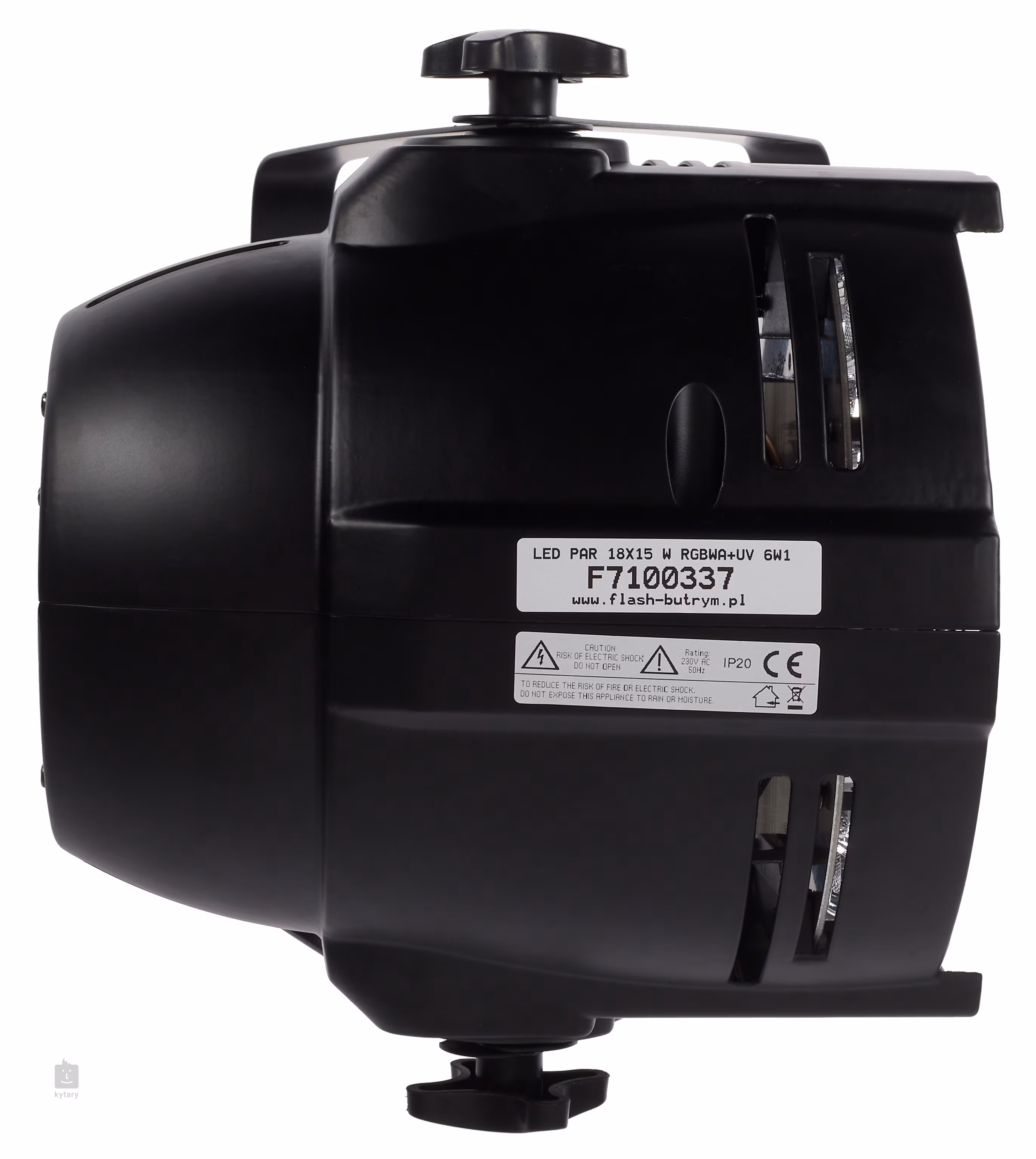 Ez a LED PAR reflektor a Flash-től tökéletes választás minden világítástechnikai szakember számára, aki nem akarja magát semmilyen módon korlátozni a színkeverés során. A tizennyolc 15W-os RGBWA + UV (6in1) LED szinte végtelen lehetőségeket biztosít, amelyek még a legigényesebb felhasználóknak is tetszeni fognak, lehetővé téve a gazdag árnyalatoktól a lágy pasztellszínekig sokféle árnyalat létrehozását. Tartalmaz egy ultraibolya fényt is a foszforeszkáló fényshow-k létrehozásához. A színek mellett egy stroboszkópos hatást is kap, állítható sebességgel és fényerőszabályzóval.