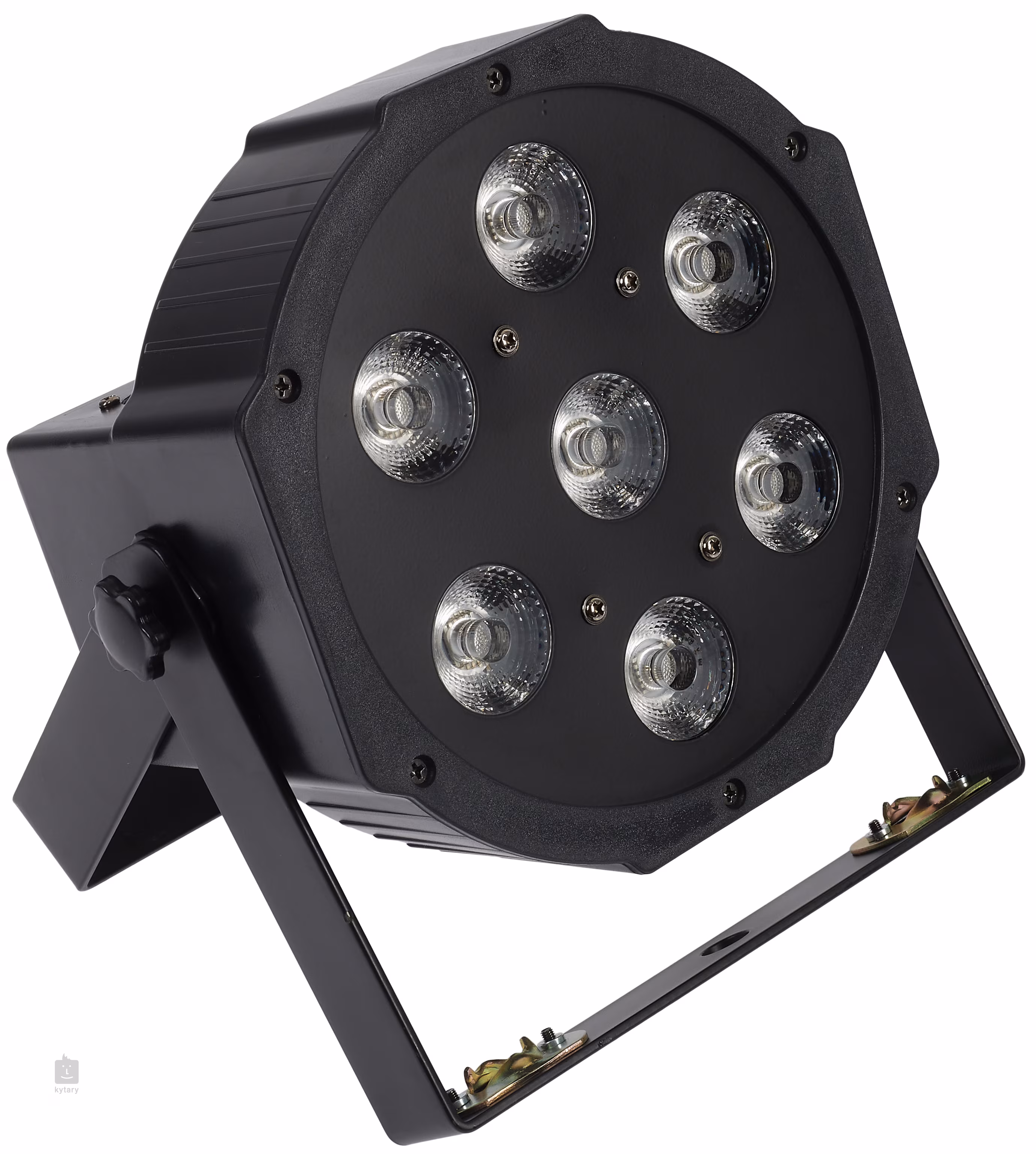A LED PAR 56 7x15W RGBWA+UV 6in1 a Flash-től egy kompakt és könnyű, mégis meglepően erős LED PAR reflektor, amely különösen nagyszerű mobil eszközként utazó világításhoz és zenészek számára. Lehetővé teszi egy kisebb zenei rendezvény, esküvő vagy vállalati esemény megbízható megvilágítását. Ideális választás minden olyan világítástechnikai szakember számára, aki nem akarja korlátozni magát a színek keverésében - fényforrása hét 15W-os RGBWA + UV (6in1) LED, amelyek szinte végtelen lehetőségeket biztosítanak, amelyek még a legigényesebb felhasználóknak is tetszeni fognak, és lehetővé teszik a gazdagtól a lágy pasztellszínekig számos árnyalat létrehozását. Tartalmaz egy ultraibolya fényt is a foszforeszkáló fényshow-k létrehozásához. A színek mellett egy stroboszkópos hatást is kap, állítható sebességgel és fényerőszabályzóval.