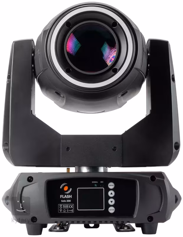 A Flash cég SOLO 200 forgófejű SOLO 200 professzionális világításra szolgál klubokban, táncos bárokban és különféle különleges rendezvényeken. Fényforrása egy központi 200 W-os LED-dióda, amely hideg fehér fényt bocsát ki9000 K, amelyet színes LED-gyűrű keretez RGB típusú.