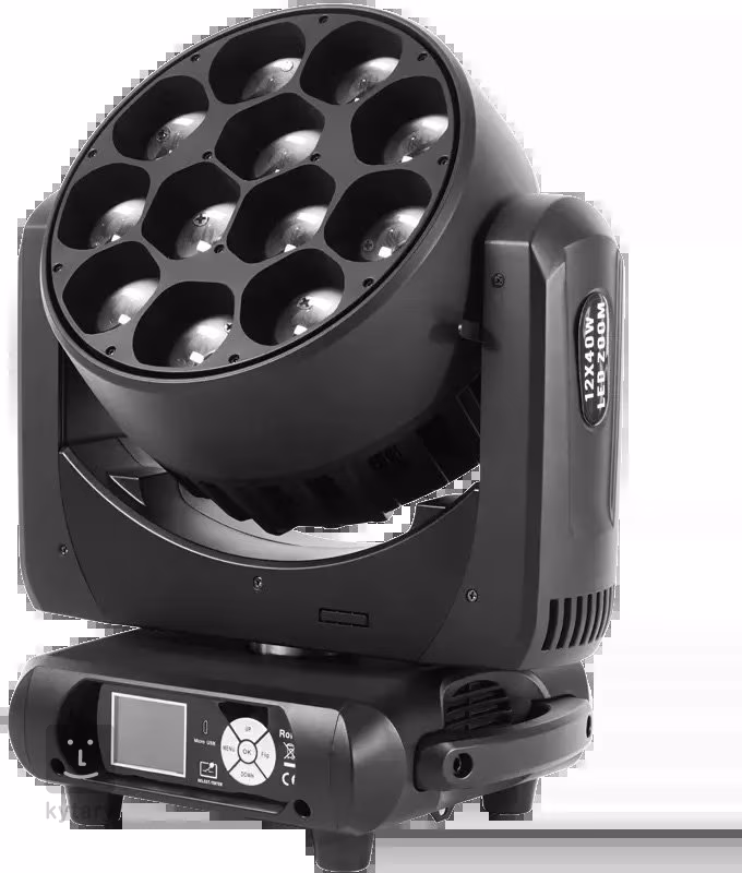 A Flash WASH LED 1240 ZOOM egy professzionális forgatható wash típusú fej, amelyet közepes és nagy színpadok, klubok vagy rendezvényhelyszínek dinamikus megvilágítására terveztek. A lámpa középpontjában tizenkét nagy teljesítményű 40 W-osRGBW típusú LED-dióda található, amelyek a telített alapszínek mellett finom pasztell árnyalatokat és tiszta fehér színt is képesek keverni. A fő előnye azonban a motoros zoom, amelynek hatalmas tartománya 3,5°-tól 55°-ig terjed. Ennek köszönhetően a fény könnyen átalakítható keskeny, szinte sugárszerű effektusról széles és egyenletes wash-ra, amely az egész színpadot lefedi.