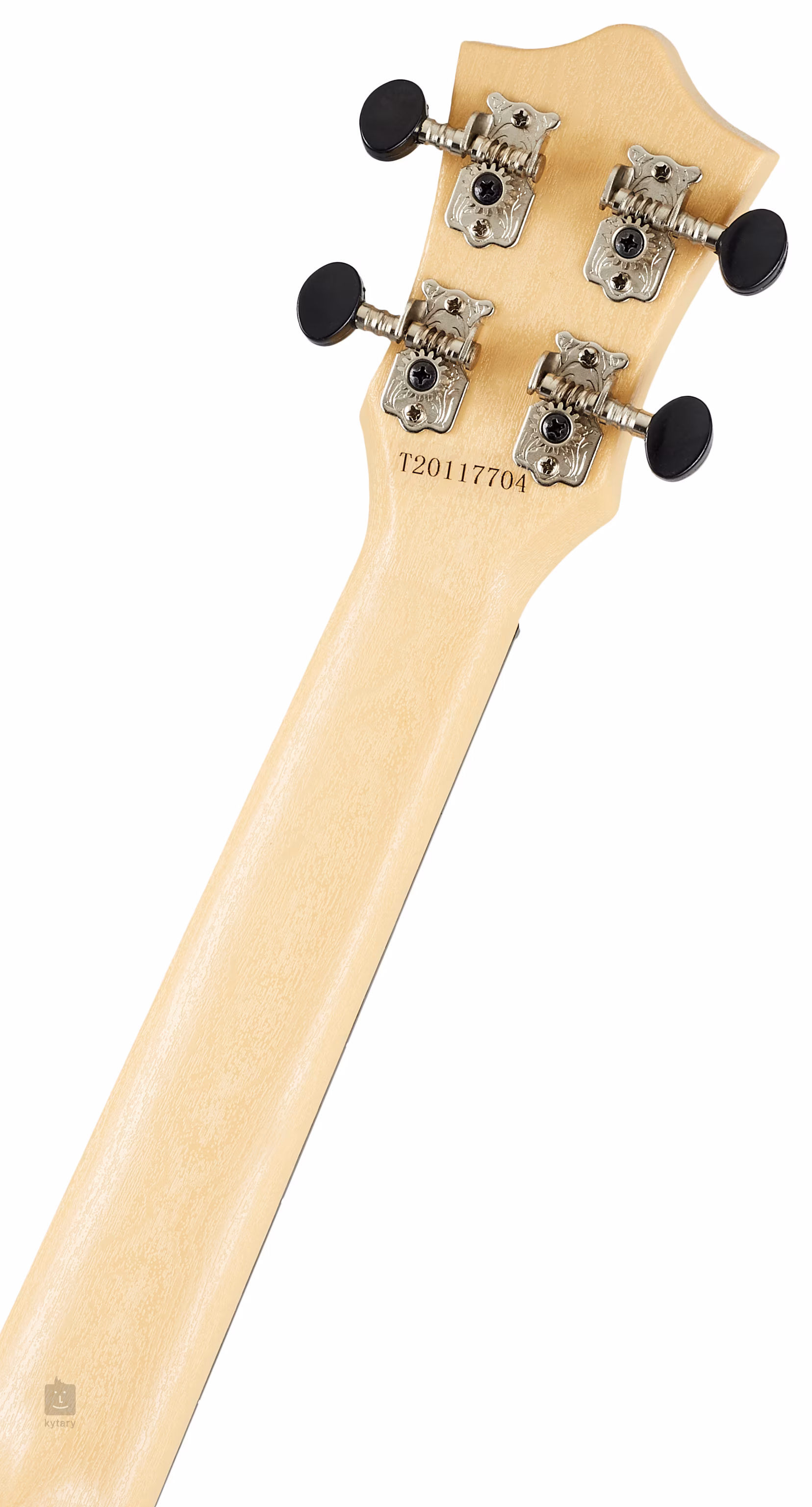 Ennek a koncert ukulelének a teste műanyag testből és laminált mahagóni hangfalból áll. Az ukulele szélesebb ívű hátlapja lehetővé teszi, hogy a hangszer tisztább és hangosabb hangzással rezonáljon, mint a standard koncertmodellek. A nyak és a fogólap szintén ABS műanyagból készült, a nyak kialakítása a fa textúráját utánozza. A húrokat műanyag nulla- és nyeregbundok rögzítik a gitár stílusú hangolókarokban (Geared) és a műanyag fejlécben. A szép kivitelezést a mahagóni furnérral díszített fejléc kialakítása hangsúlyozza.
