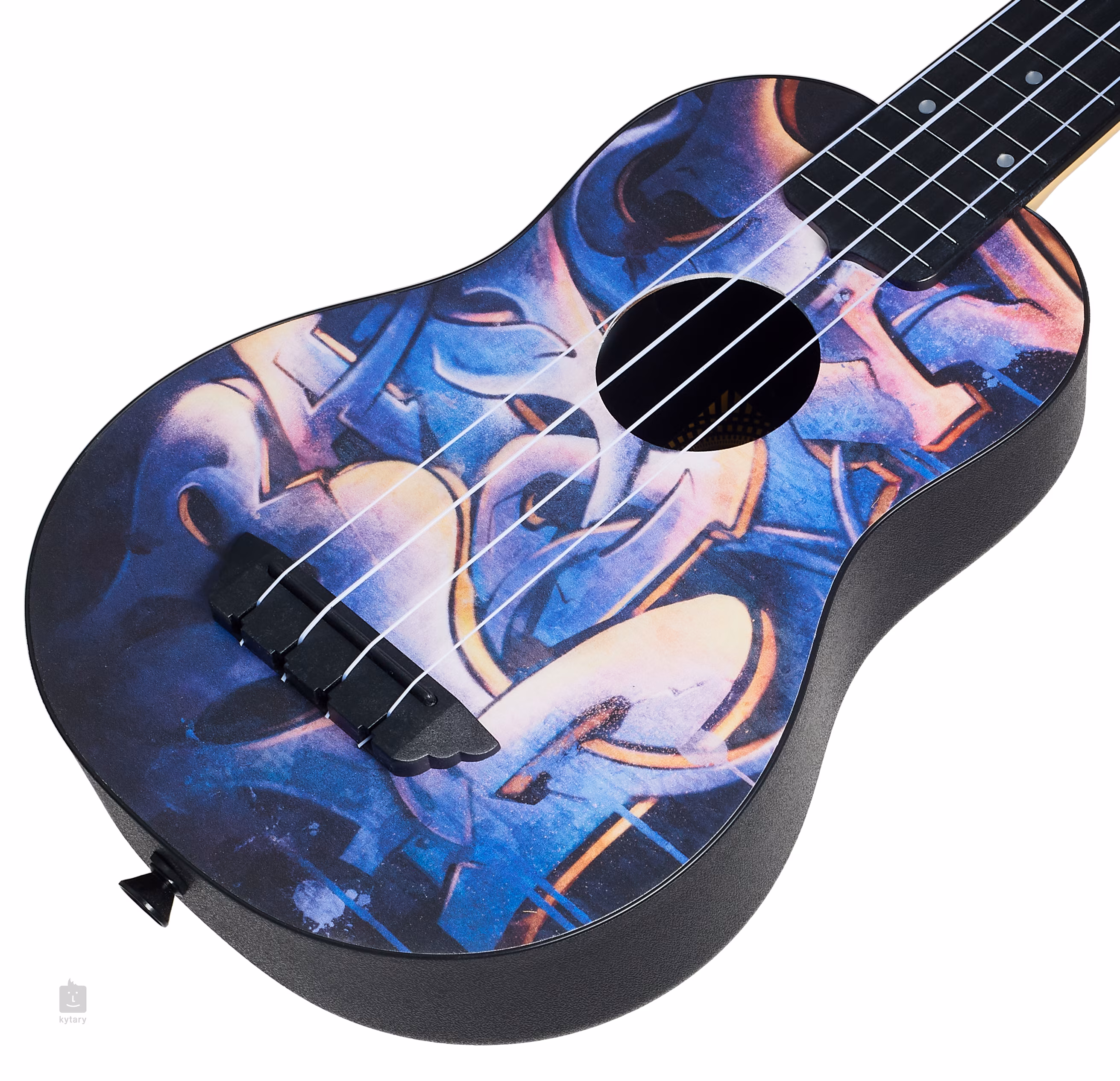 Ennek a szoprán ukulelének a teste műanyag testből és laminált hársfa hangfalból áll, amelyet a londoni perifériák utcai művészete által inspirált grafikai motívumok díszítenek. Az ukulele szélesebb ívű hátlapja lehetővé teszi, hogy a hangszer tisztább, hangosabb hangzással rezonáljon, mint a standard szoprán modellek kínálják. A nyak és a fogólap szintén ABS műanyagból készült, a nyak kialakítása a fa textúráját utánozza. A húrokat műanyag null- és nyeregbundok rögzítik a gitár stílusú hangolókarokban (Geared) és a műanyag fejlécben. A hangszer stílusos megjelenését a fejléc mészfurnérja emeli ki, amely színben összehangolva van a fedlap fényezésével.