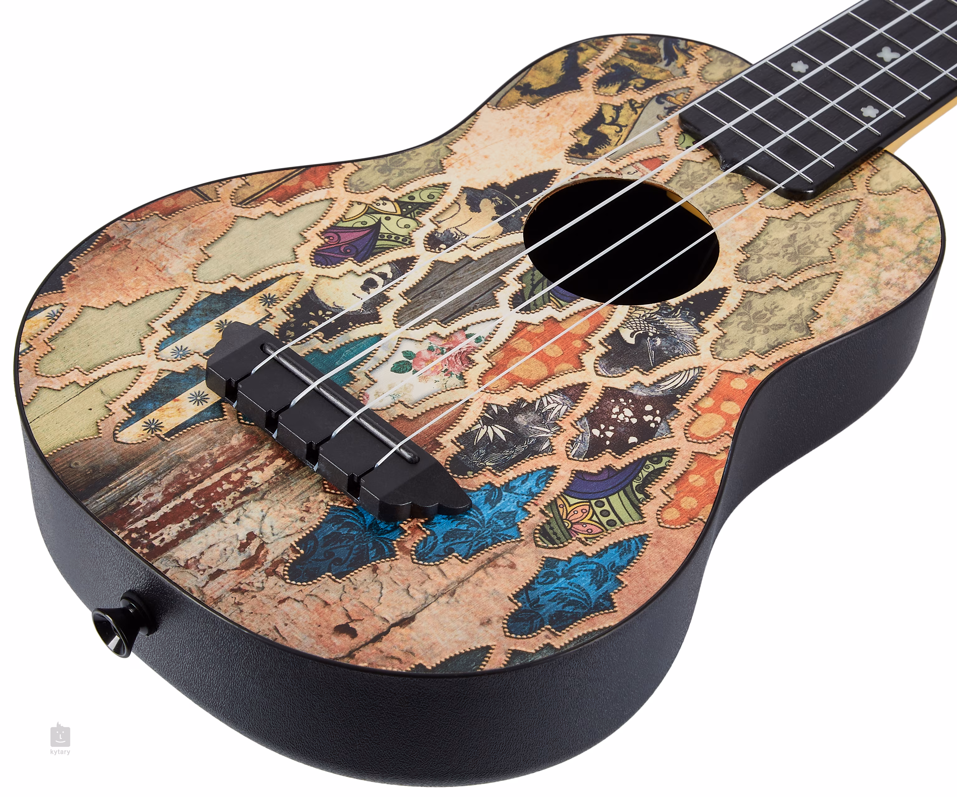 Ennek a szoprán ukulelének a teste műanyag testből és színes grafikus motívumokkal díszített, laminált hársfa hangfalból áll. Az ukulele szélesebb ívű hátlapja lehetővé teszi, hogy a hangszer tisztább és hangosabb hangzással rezonáljon, mint a standard szoprán modellek kínálják. A nyak és a fogólap szintén ABS műanyagból készült, a nyak kialakítása a fa textúráját utánozza. A húrokat műanyag null- és nyeregbundok rögzítik a gitár stílusú hangolókarokban (Geared) és a műanyag fejlécben. A hangszer stílusos megjelenését a fejlécen található juhar furnér hangsúlyozza, amely színben harmonizál a fedlap fényezésével.