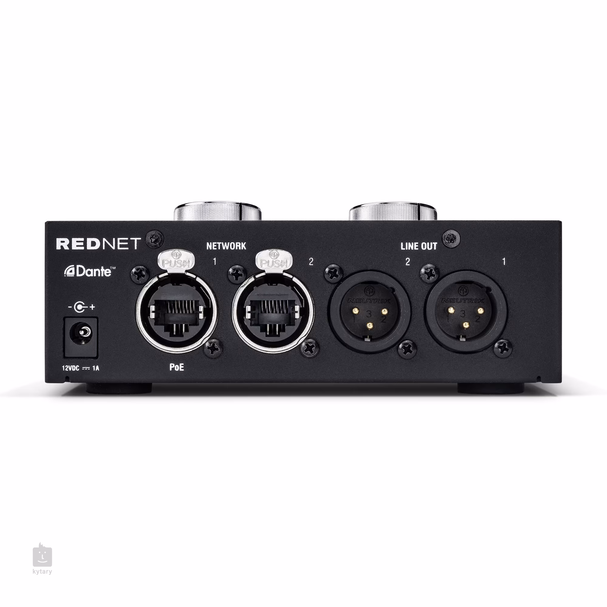 Kiváló D/A átalakítási minőség A RedNet AM2 tartalmaz egy kétcsatornás Dante vevőt, amely az Audinate „Ultimo” hardverén alapul, és kiváló minőségű digitális-analóg átalakítást biztosít a 44,1–96 kHz közötti standard mintavételi frekvenciákon, mindkét kimenet 118 dB-nél jobb dinamikatartományt kínál. Az egység belső órajelre vagy a Dante Network Masteren keresztül is vezérelhető. A két nagy hangerő-szabályozó gomb a fejhallgató és a vonali kimenet szintjének szabályozására szolgál, a második gomb pedig egy hangelnyomó gombbal és egy megfelelő LED-del van ellátva. További jelzők mutatják a tápellátás, a hálózat és a jel jelenlétét. A jeljelző 0 dBFS esetén pirosan, -6 dBFS esetén narancssárgán, -42 dBFS esetén pedig zölden világít mindkét csatornán, míg a hálózati jelző akkor világít, ha az 1. vagy 2. porton érvényes hálózati kapcsolat van.