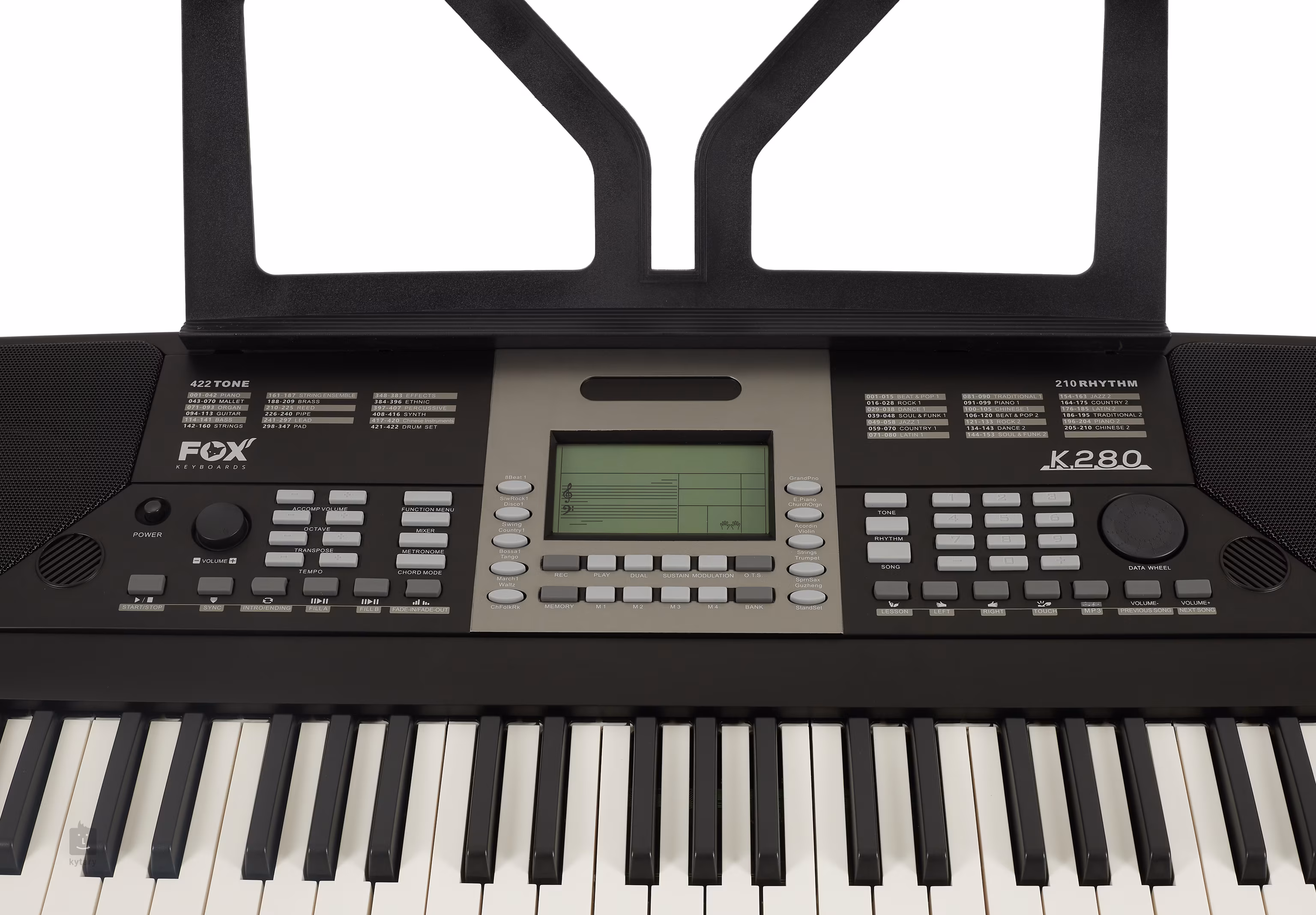 Azt, hogy a FOX K-280 nem játék, a többi fejlett funkció listája is megerősíti, amelyek általában sokkal drágább hangszereken találhatók.