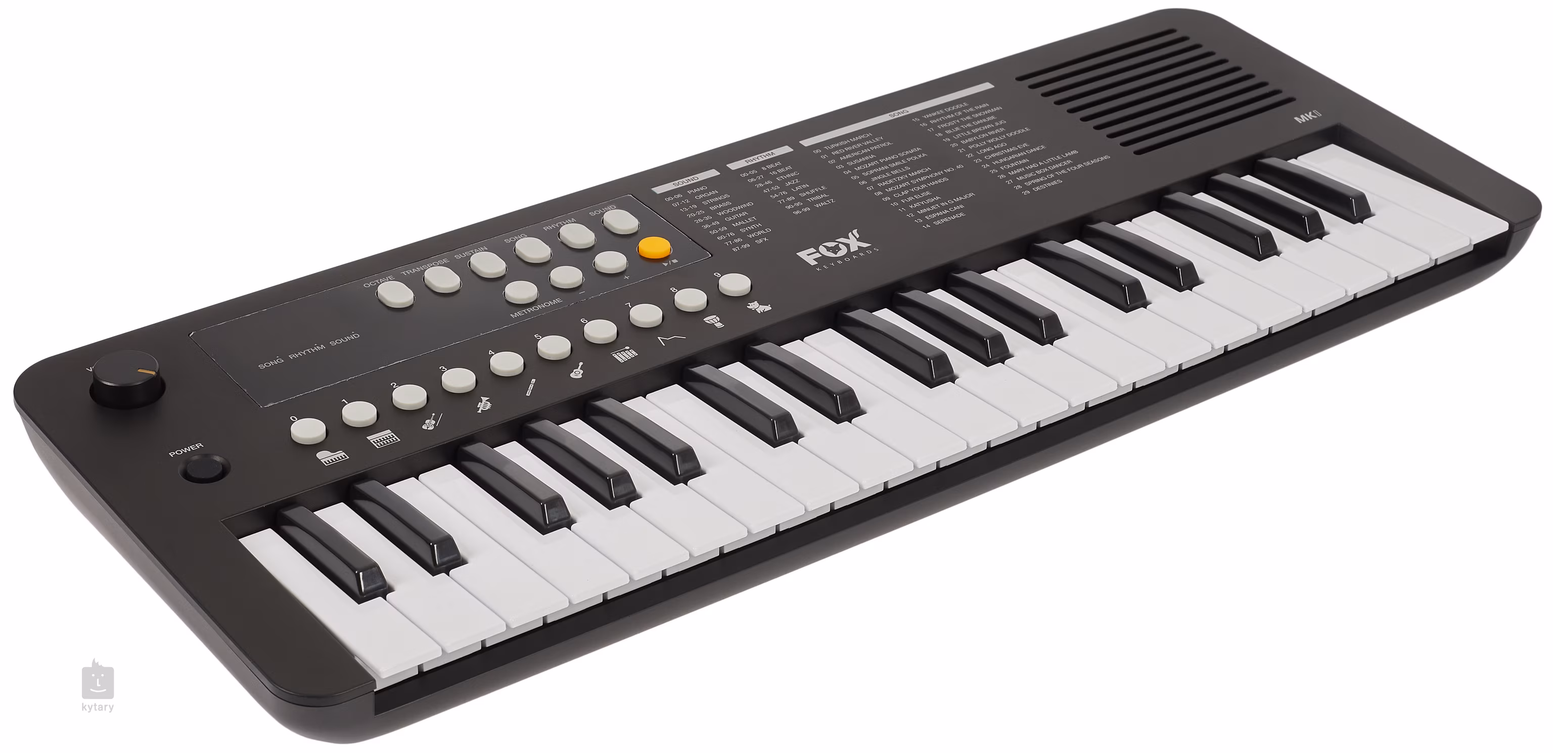 A FOX Keyboards MK1 egy egyszerű gyermekbillentyűzet 37 mini billentyűvel, 99 hanggal, 99 ritmussal és 29 dallal.