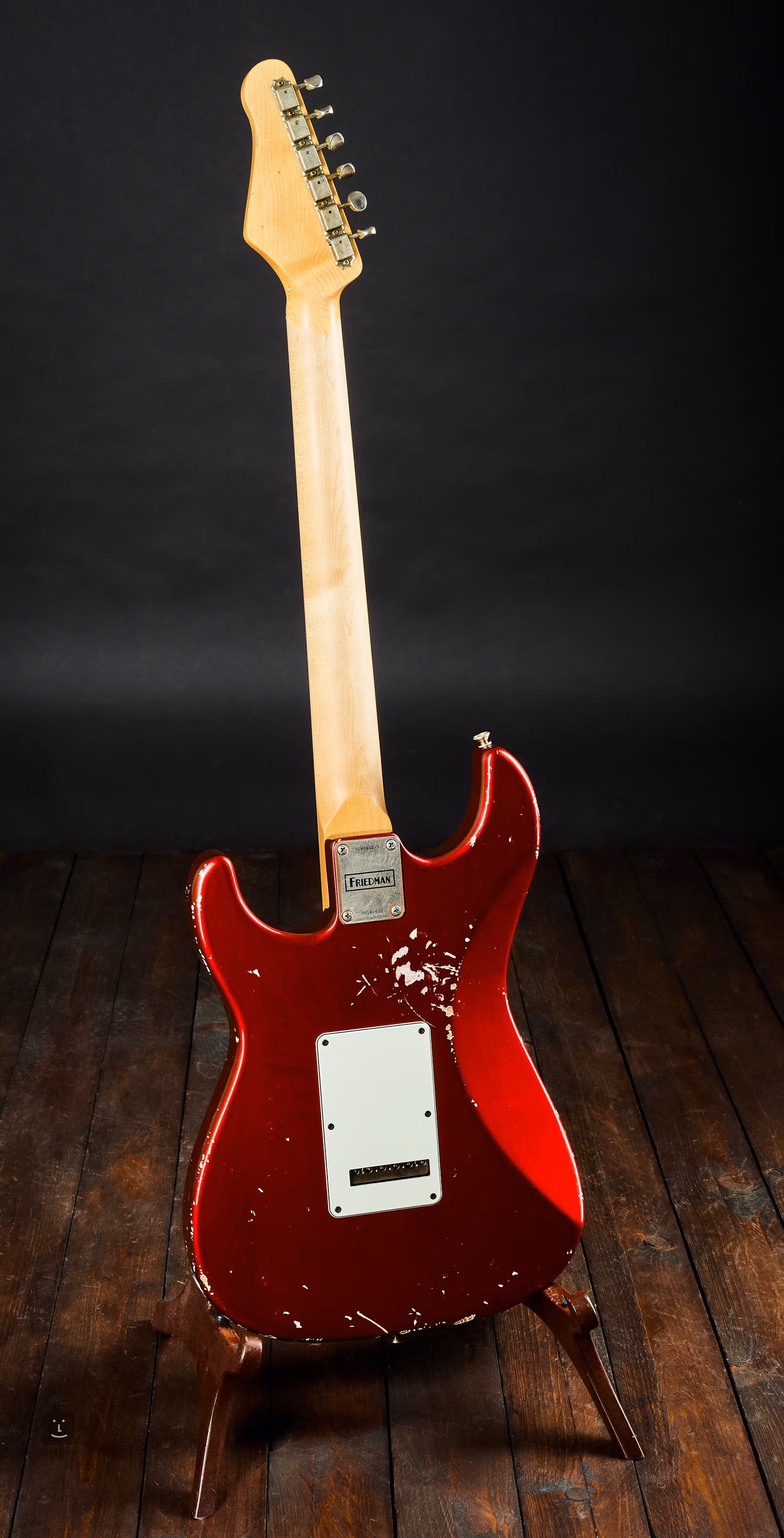 Mesterségesen patinázott kivitel: a lakkozás szándékosan repedezett és koptatott, hogy egy sokat játszott vintage hangszer érzetét adja. Nagyon rezonáns.