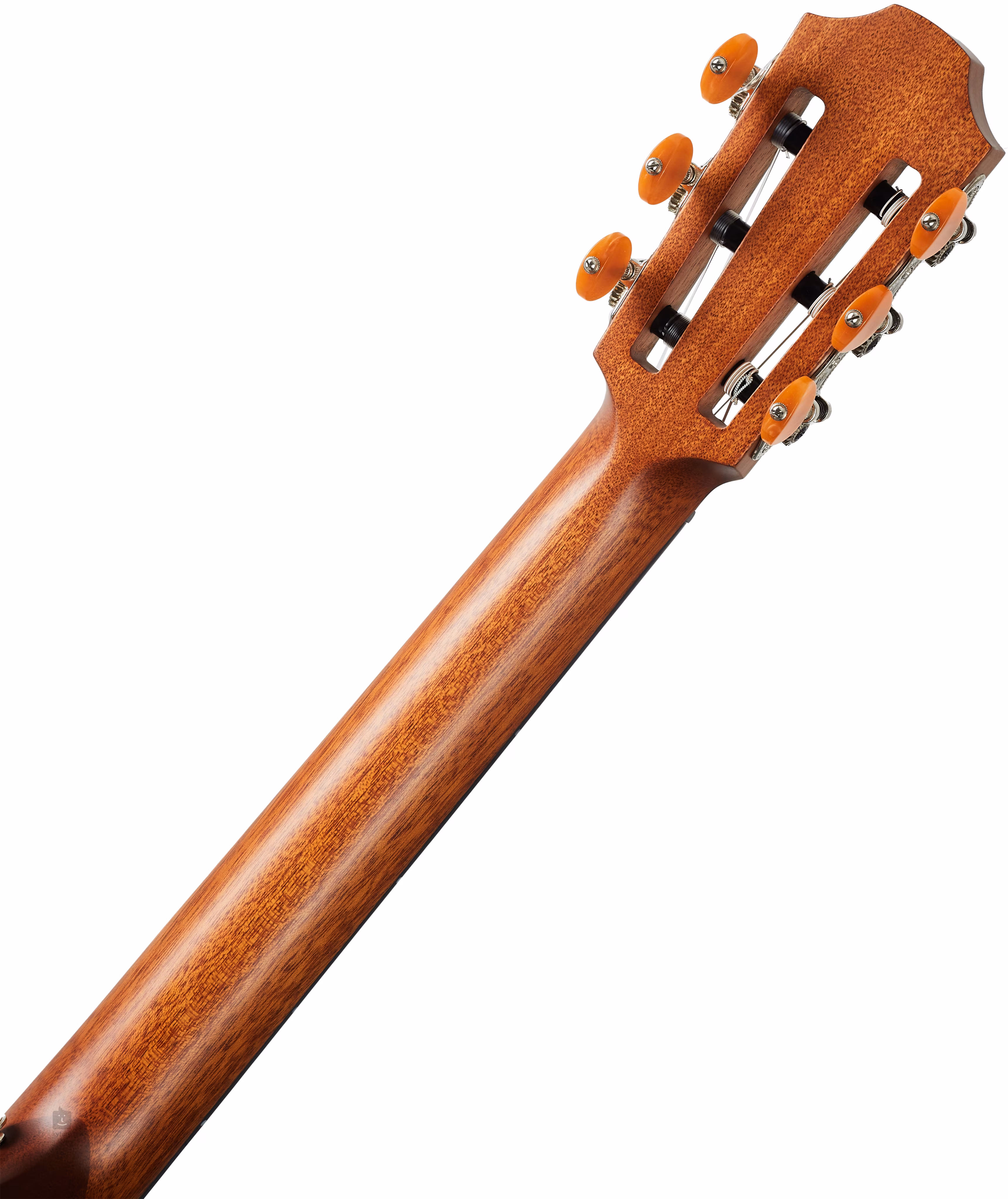 Az ébenfa fogólapot egy Furch Soft V profillal ellátott afrikai mahagóni nyakra ragasztották, amely hagyományos 12. bundos kapcsolattal kapcsolódik a testhez. Nylon húrokat rögzítenek a TusQ nulla és a nyeregbundokon keresztül egy ébenfa fogólapon és Schaller Hauser krómozott hangolókarokon. A gitár vonzó, természetes megjelenését a fényes testfényezés, a kontrasztos vonalakkal ellátott mű teknőspáncél kötés, a mű teknőspáncél berakással ellátott dupla gyűrűs rozetta, a fehér gyöngyházpontos pozíciójelzők, a polírozott ébenfa hangolószegek és az átlátszó koptatógumi részletei hangsúlyozzák.
