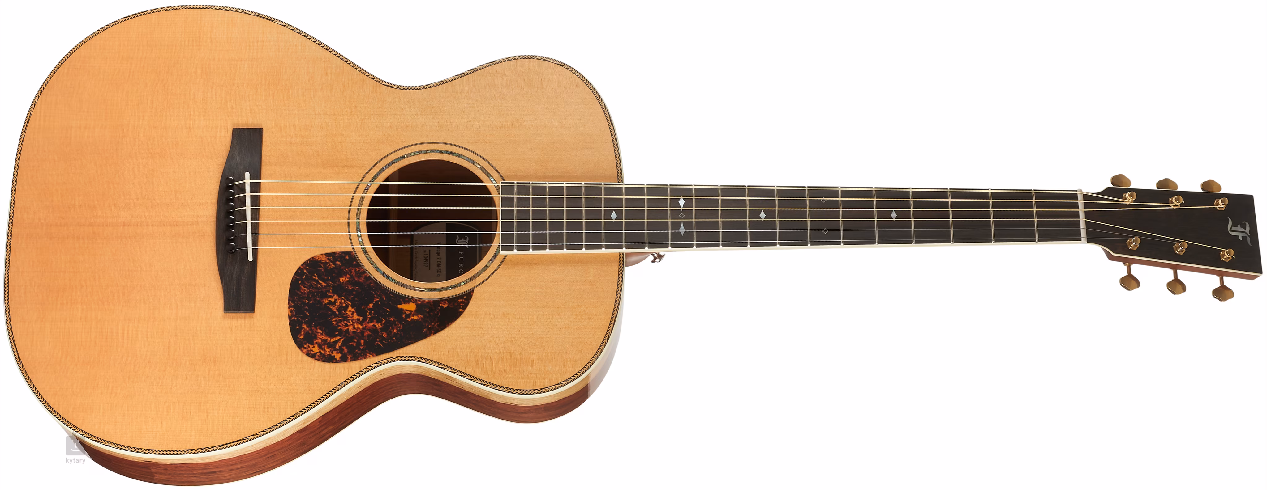 Az ébenfa fogólapon a fehér gyöngyházból készült négyzet alakú pozíciós jelölések és az oldalsó fekete pontjelölések megkönnyítik a tájékozódást. A stabil hangolást a csúcsminőségű Gotoh SE700 mechanika biztosítja, arany patina színben, 1:15 áttételi aránnyal. A gitár vintage megjelenését hangsúlyozza a halcsont mintázatú elülső lemezbetét, a zöld abalone kettős gyűrűs rozetta, a műanyag elefántcsontból készült test-, fej- és fogólap szegély, valamint a műgyöngyház imitációból készült pickguard.