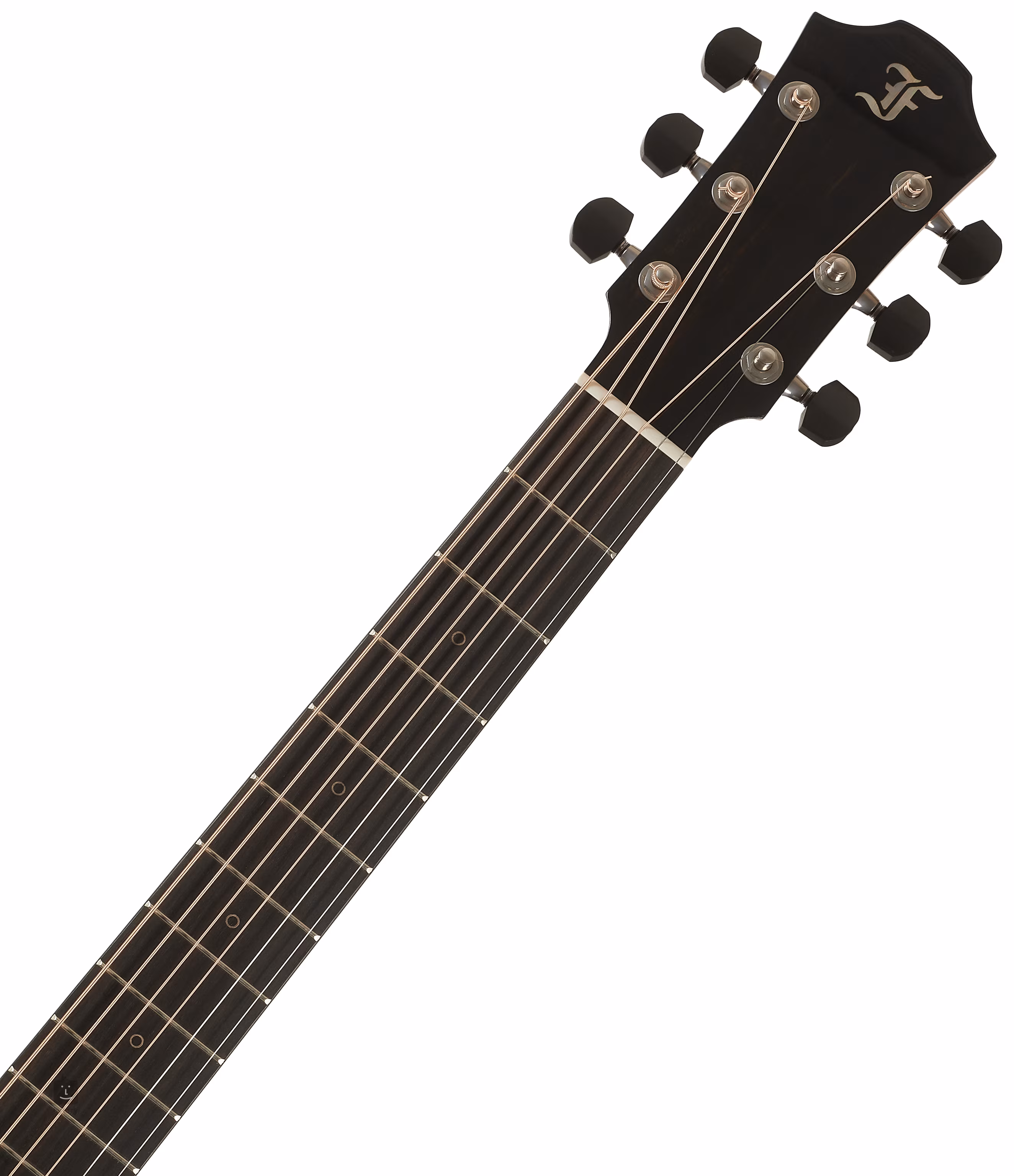 Az áttetsző koptatóvédelem kiemeli a fa természetes szemcsézettségét, miközben nem befolyásolja a hangfal rezonanciáját. A stabil hangolást a csúcsminőségű, ezüst patinás Gotoh 510-es mechanika garantálja, polírozott ébenfa fogantyúkkal és finom 1:21-es áttétellel.