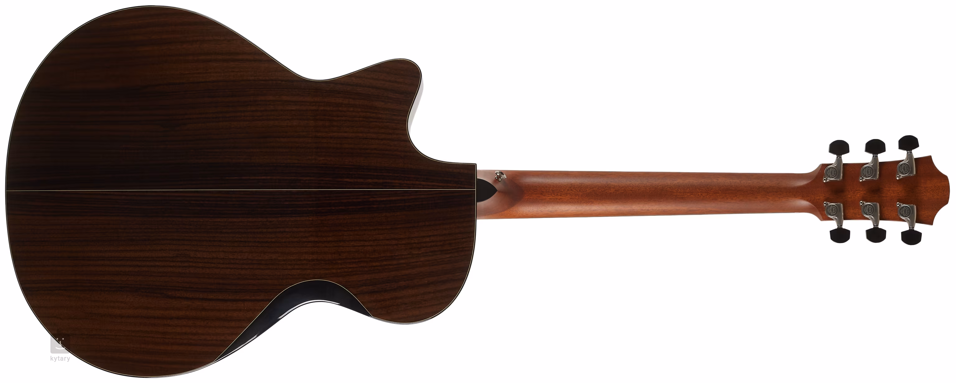Az ébenfa fogólapon az elegáns pozíciójelölések vékony, fehér gyöngyház kontúrvonallal és oldalsó gyöngyház pontjelölésekkel megkönnyítik a tájékozódást. Az átlátszó pickguard kiemeli a fa természetes mintázatát, ugyanakkor nem befolyásolja a fedlap rezonanciáját. A stabil hangolást a csúcsminőségű Gotoh 510 mechanika biztosítja, ezüst patinával, csiszolt ébenfa csapokkal és 1:21-es finom áttételi aránnyal. A szép kivitelezést finom részletek hangsúlyozzák, mint például a dupla gyűrűs rozetta zöld abalón berakással és fekete szegély fehér kontrasztos vonallal.