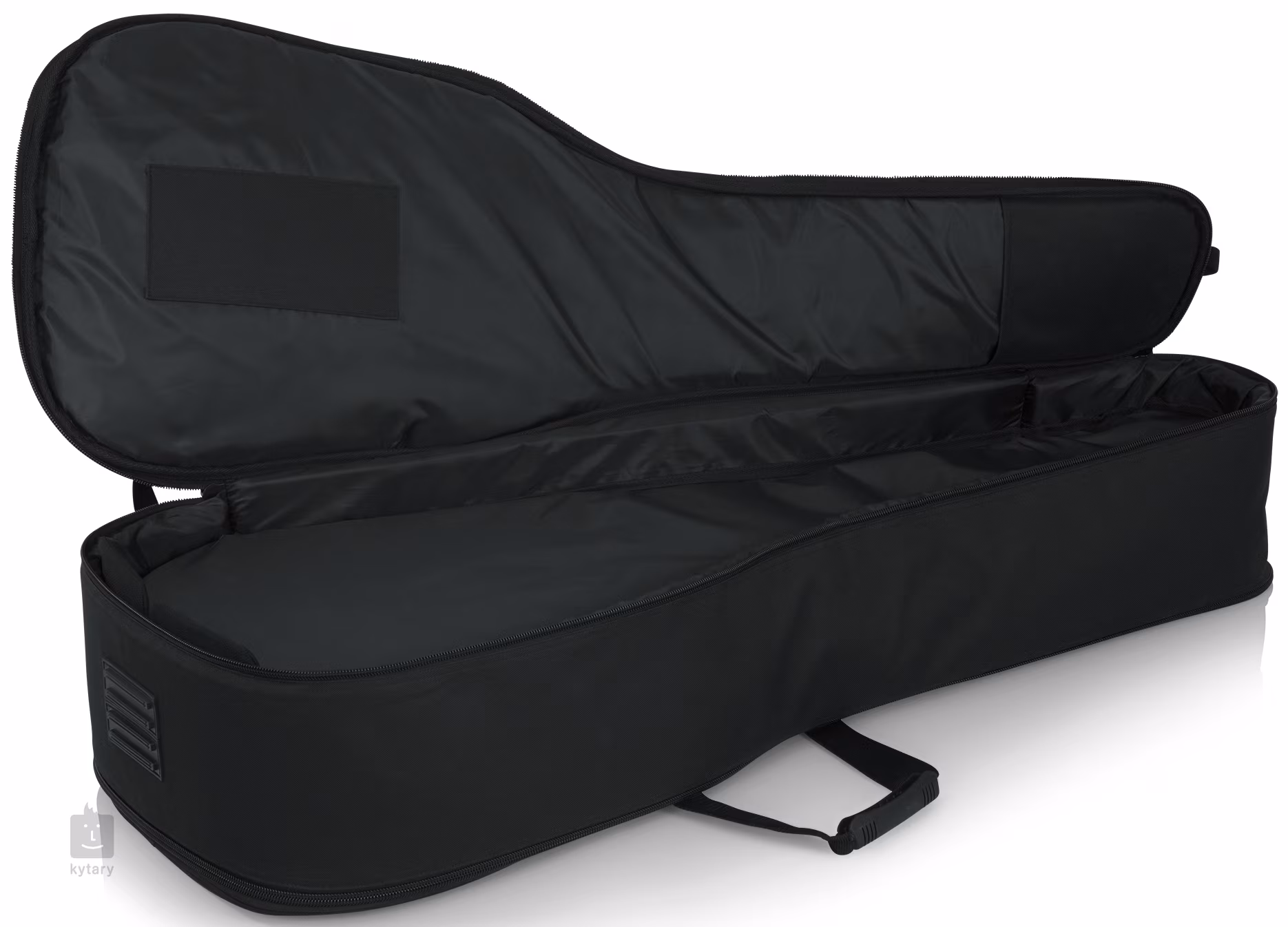A tok tartós nylon anyagból készült, és minden oldalán 20 mm-es GFLEX habbéléssel van megerősítve, amely maximális védelmet nyújt az ütések és a mechanikai sérülések ellen. A belső szerkezet megerősítést tartalmaz a fej és a húrtartó területén, amely megakadályozza a kopást ezeken az érzékeny helyeken. A kis kiegészítők könnyű rendszerezéséhez elülső zseb áll rendelkezésre, amelybe húrok, hangoló vagy egyéb kiegészítők is beférnek, és nem hiányzik az egyedi Pick-Clip a cipzár fején sem, amely vészhelyzeti pengető rögzítésére szolgál.
