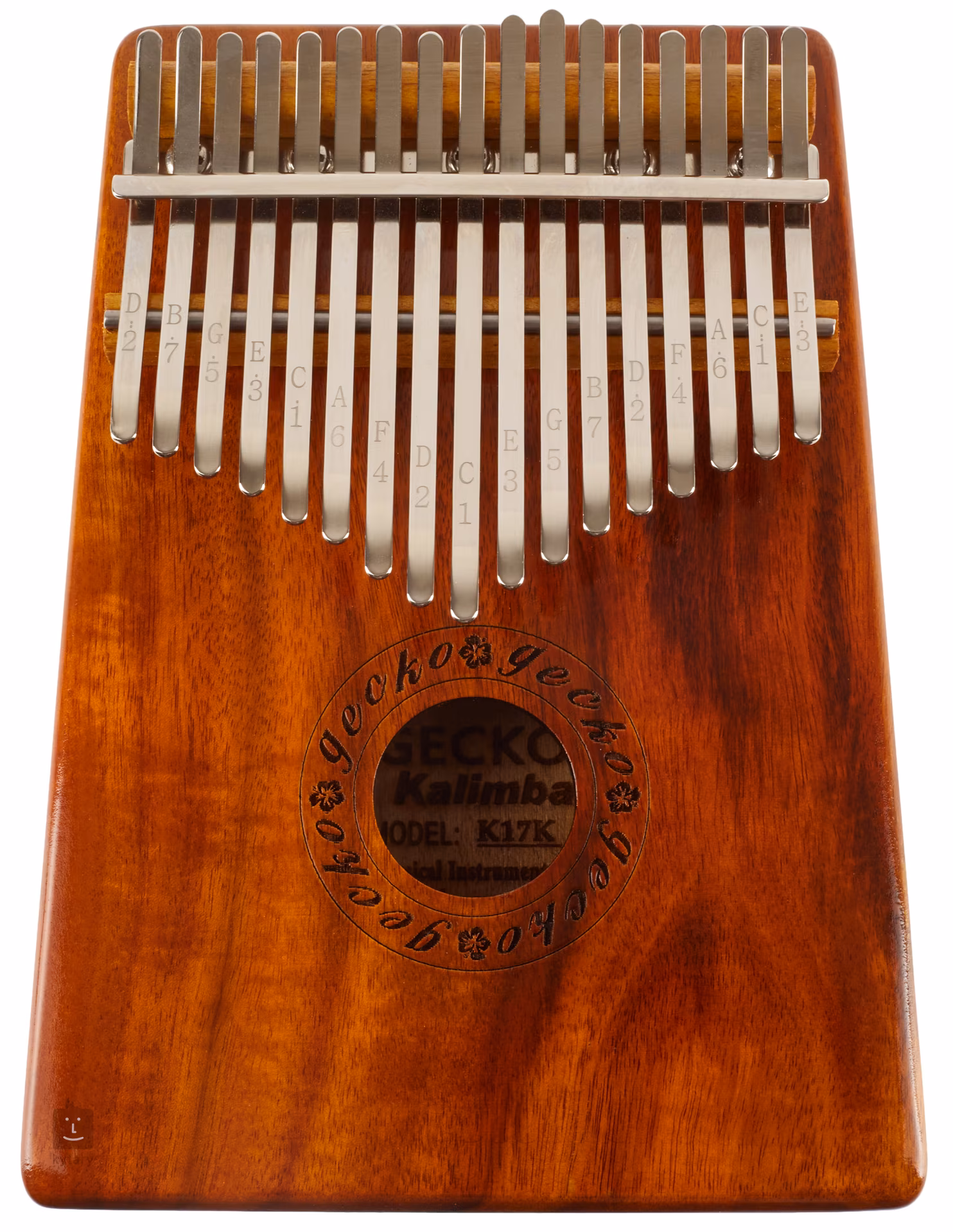 A Gecko Kalimba egy egyedülálló dallamhangszer, amely egyedi és összetéveszthetetlen elemet ad a produkciójához vagy élő előadásához. A kalimba kíséretre vagy szólójátékra is használható. A hangszer egy masszív fahátlap és a hangszalagok kombinálásával készült. A K-17KEQ egy nagyon rugalmas hangszer C-dúr hangolásban. Tizenhét szelet és egy Koa hangfal lesz a még jobb hangzás érdekében. A biztonságos szállításhoz egy védőtáska is tartozik. A kalimba piezo hangszedőt és kábeles kimenetet tartalmaz, amelyhez keverőpult vagy erősítő csatlakoztatható.