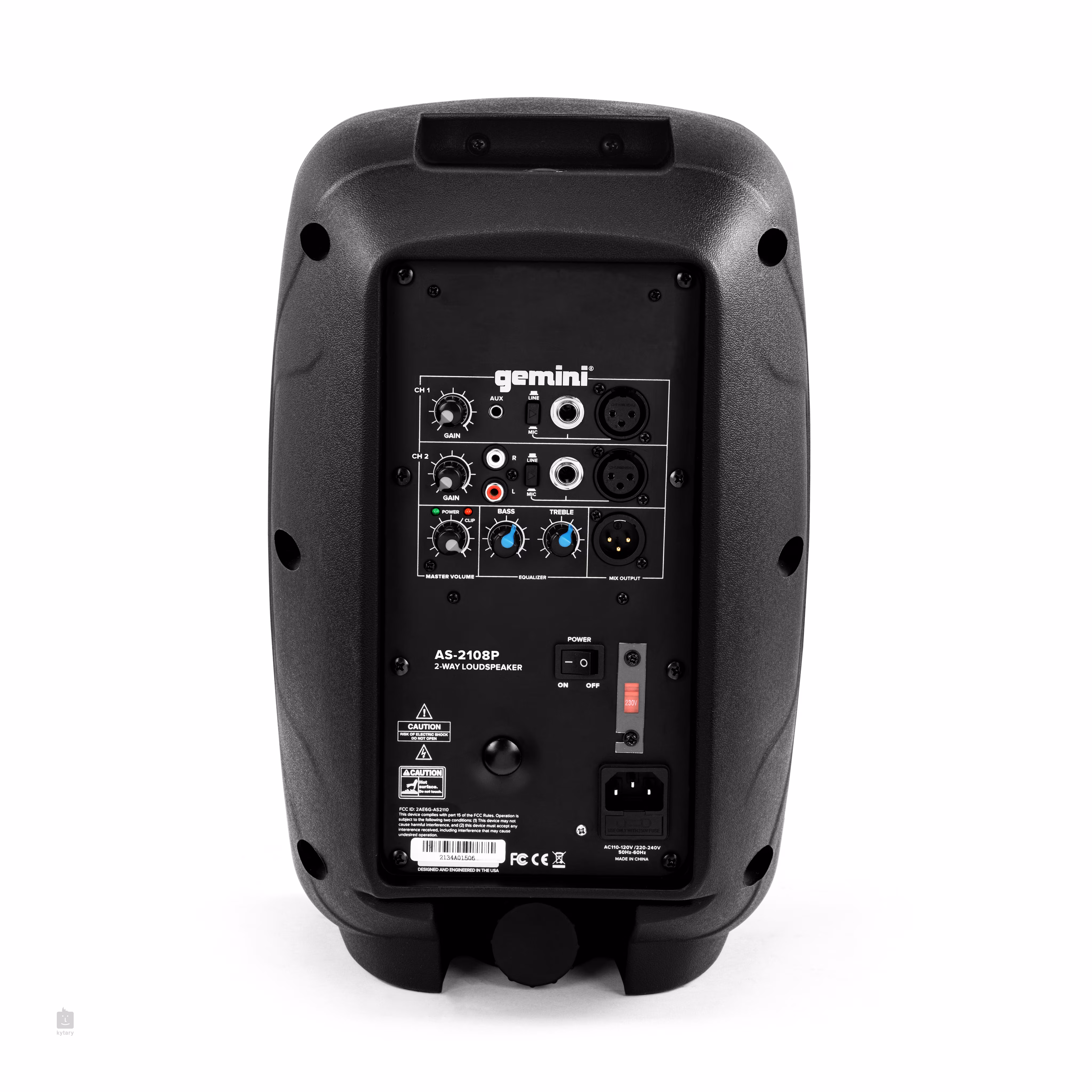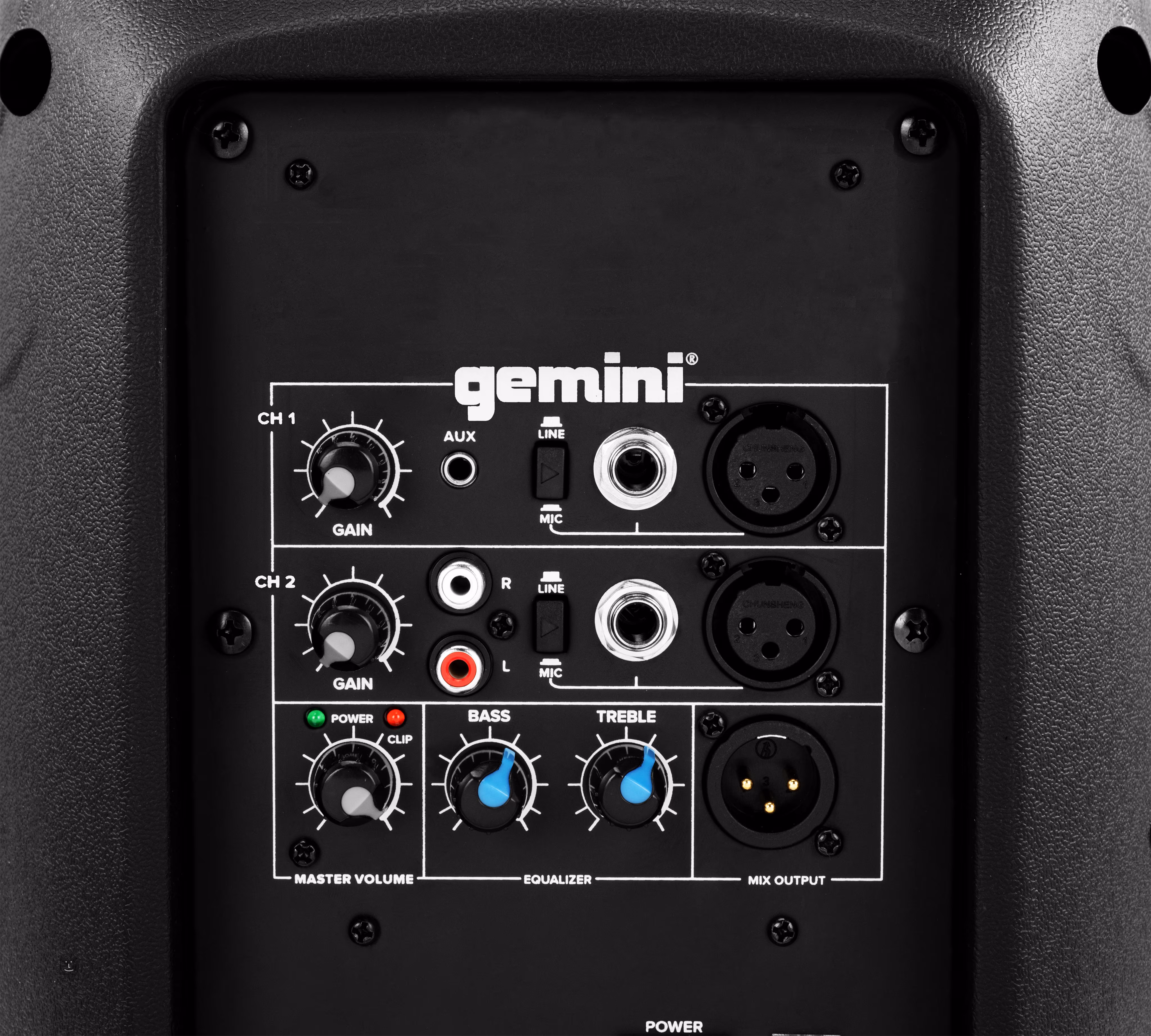 A hangszóró két csatornával rendelkezik, amelyek mindegyike lehetővé teszi egy hangszer vagy mikrofon csatlakoztatását jack vagy XLR bemeneten keresztül. Az 1. csatorna 3,5 mm-es csatlakozóval is rendelkezik az AUX-bemenethez, míg a 2. csatorna RCA csatlakozókon keresztül közvetíti az AUX-bemenetet. Mindegyik csatorna saját Gain szabályzóval van ellátva. Van továbbá egy globális fő hangerőszabályzó és egy kétsávos EQ (Bass, Treble). A hátlapon egy szimmetrikus XLR kimenetet is talál a hangszóró keverőpultra való csatlakoztatásához.