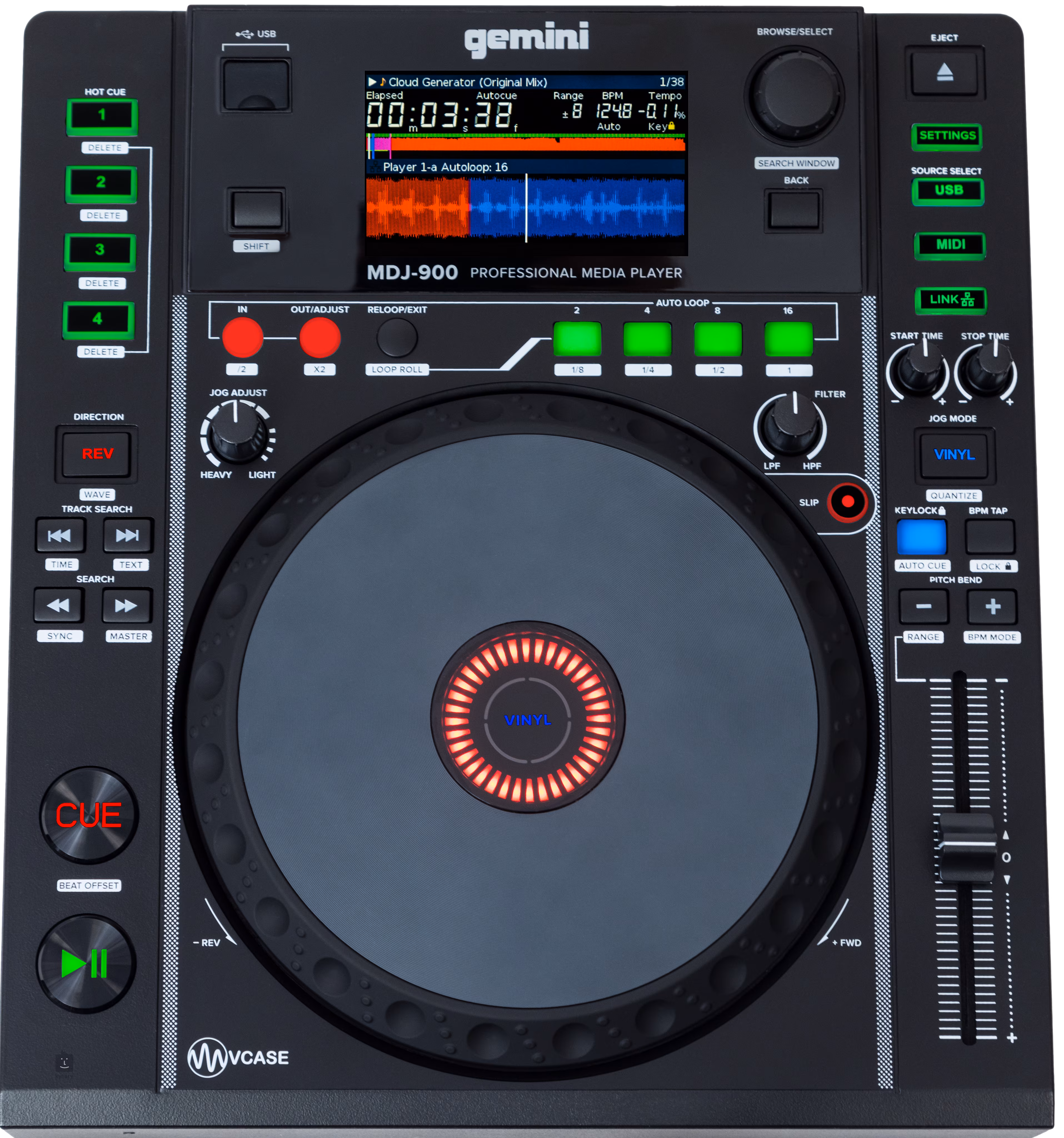 A GeminiMDJ-900 egy professzionális USB médialejátszó, amely kompakt és modern kialakításban, külső szoftver nélkül kínál széleskörű funkciókat. A maximális áttekinthetőségre és intuitív működésre tervezett eszköz ideális azoknak a DJ-knek, akik gyorsan, pontosan és saját stílusukra helyezve a hangsúlyt szeretnék elkészíteni mixeiket. A Link és Sync funkciókkal akár 4 MDJ-900 egységet is összekapcsolhat, szinkronizálhatja a BPM-eket és megoszthatja a könyvtárakat, így valós időben készíthet komplex szetteket.