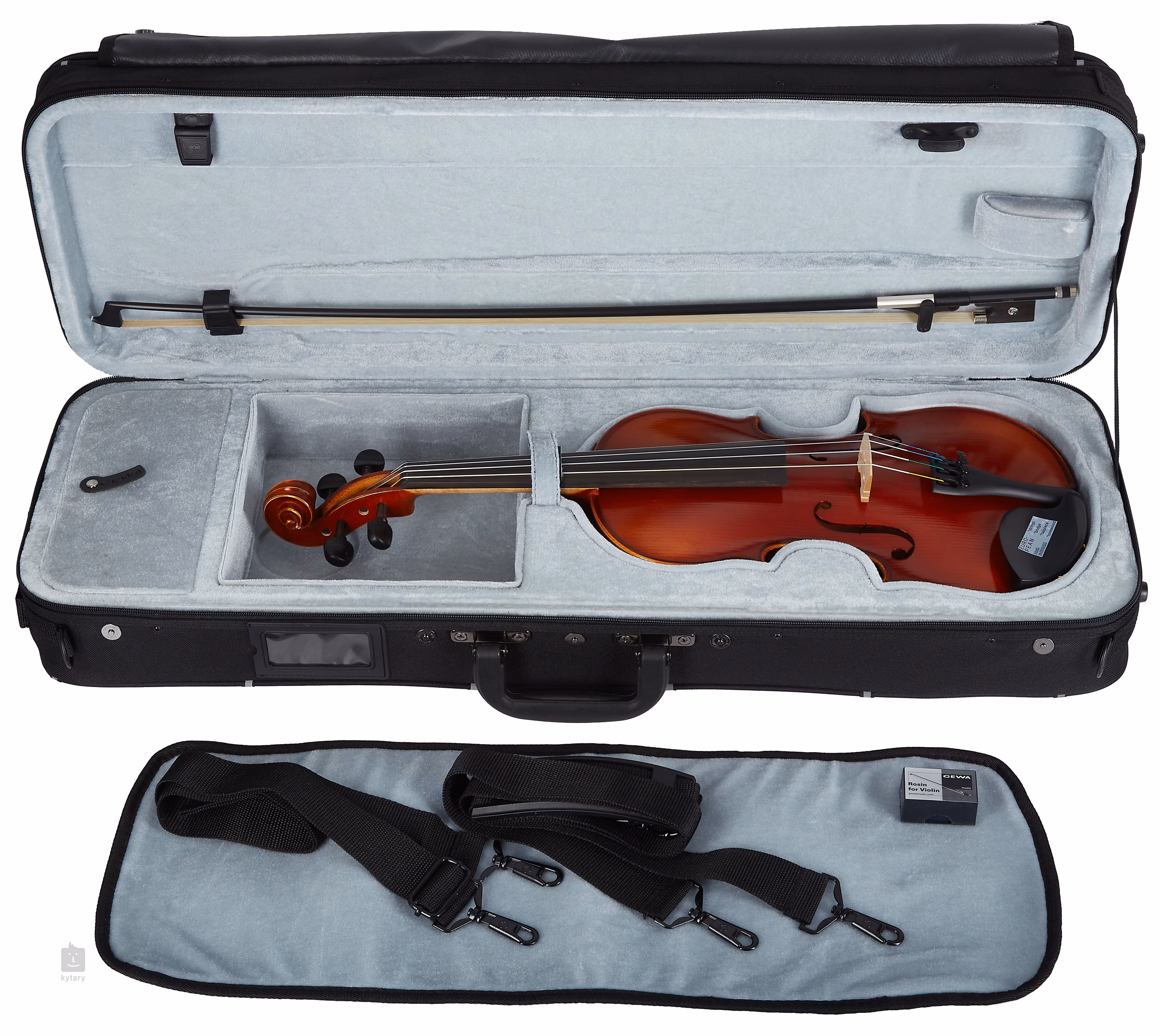 Ez a modell komplett szettben érkezik - tartalmazza a professzionális beállítást a gyártónál, az eredeti Aubert fejlécet, a kiváló minőségű Thomastik AlphaYue húrokat, a természetes erezetű karbon vonót, a kolofont és a tokot a hangszer biztonságos szállításához és tárolásához.