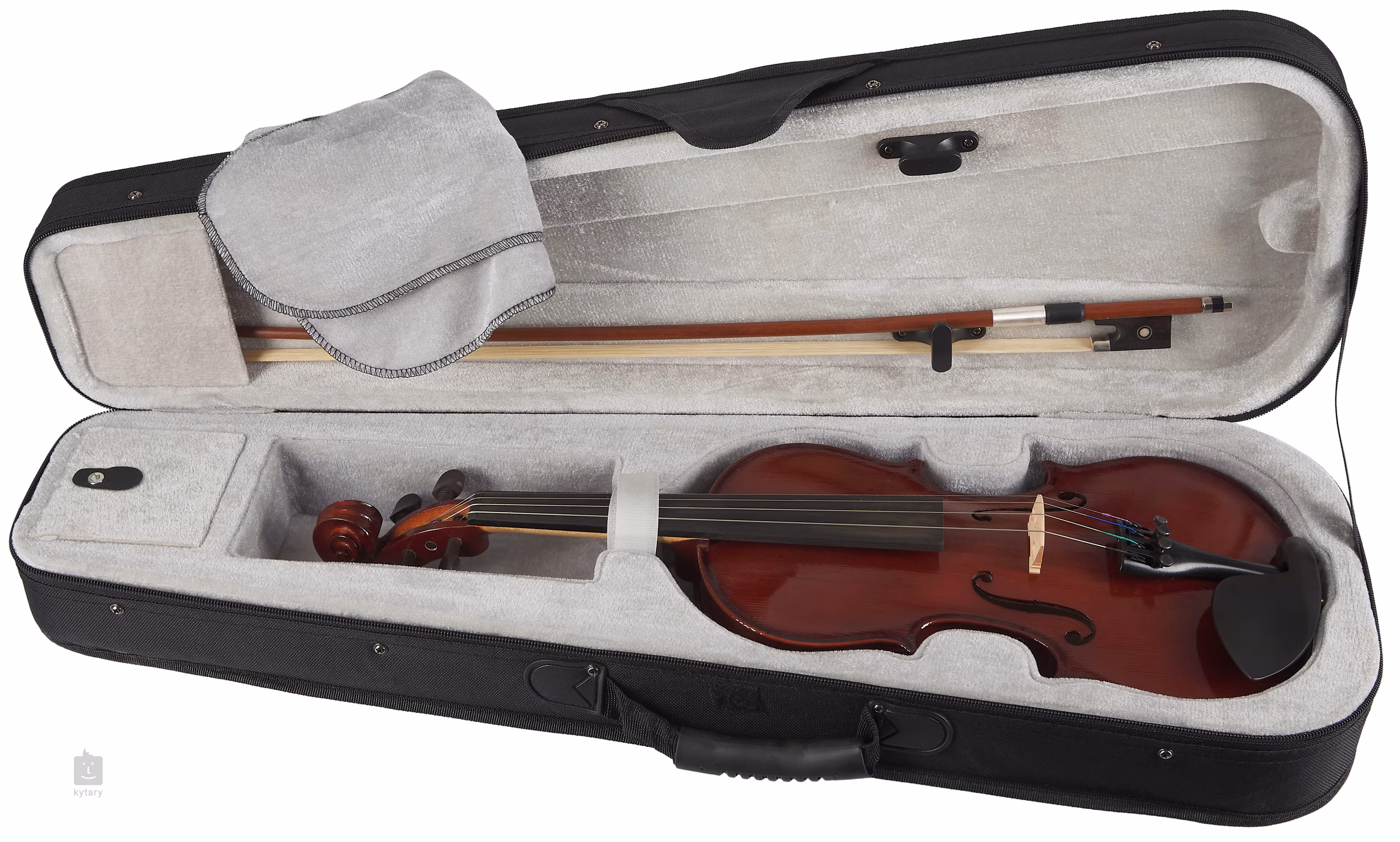 A GEWA hegedű tömör lucfenyőből készült, a hátsó és oldalfalak tömör juharból készültek. A hegedűt könnyű, csavaros fedelű tokban, kottarekesszel szállítjuk. Mindent tartalmaz továbbá, amire az azonnali játékhoz szükséged lesz: egy kolofon vonót, húrokat és egy fogólapot.