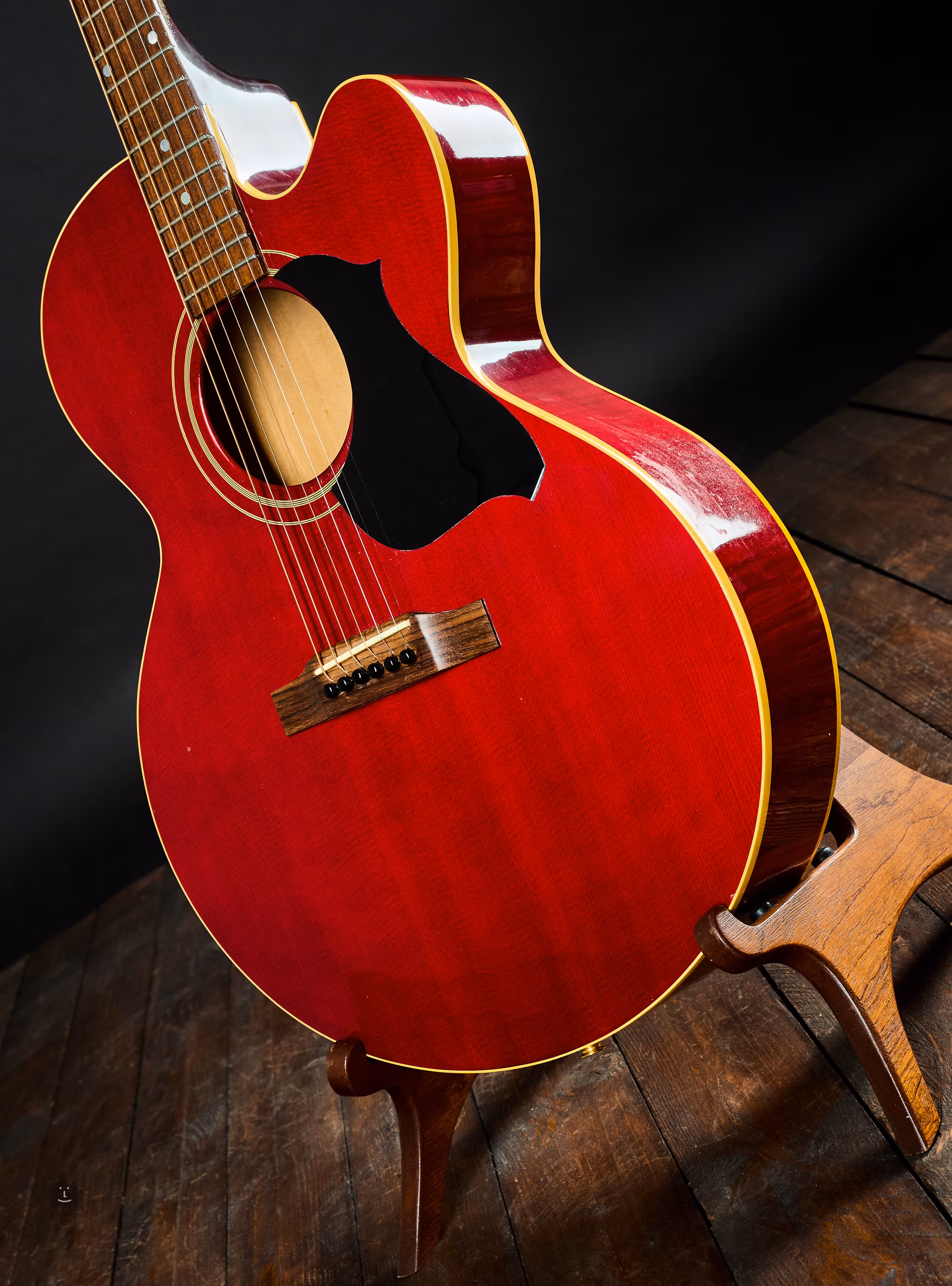 A hangszer újabb jack kimenettel és a testre ragasztott fekete, nem eredeti koptatóval rendelkezik. A piros átlátszó lakkon a kor és a gyakori használat miatt egyértelmű foltok és repedések láthatóak, a nyak hátsó részén kozmetikai rajzolatok vannak a lakkban. A gitár azonban nagyszerűen működik, beleértve a piezo hangszedőket is.