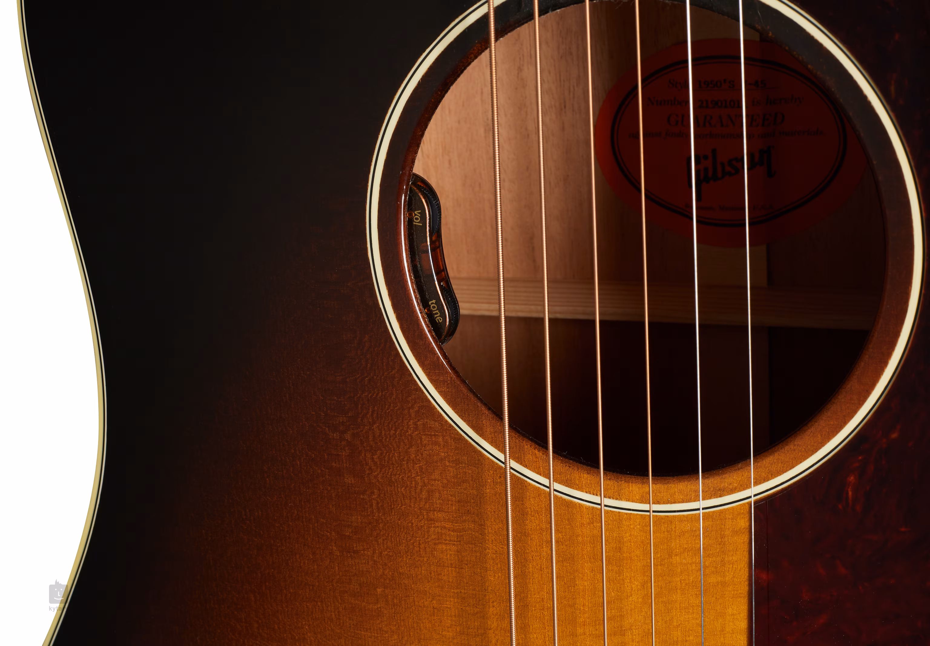 A húrokat Grover hangolókarok és a csont fogólap és nyereg fölött rózsafa fogólap tartja a helyén. A stílusos kivitelezést a többrétegű, kétoldalas peremkötés finom patinás árnyalattal és egy 50-es évekbeli, korhű kivitelű, teknőspáncél utánzatból készült koptatóval emelik ki.