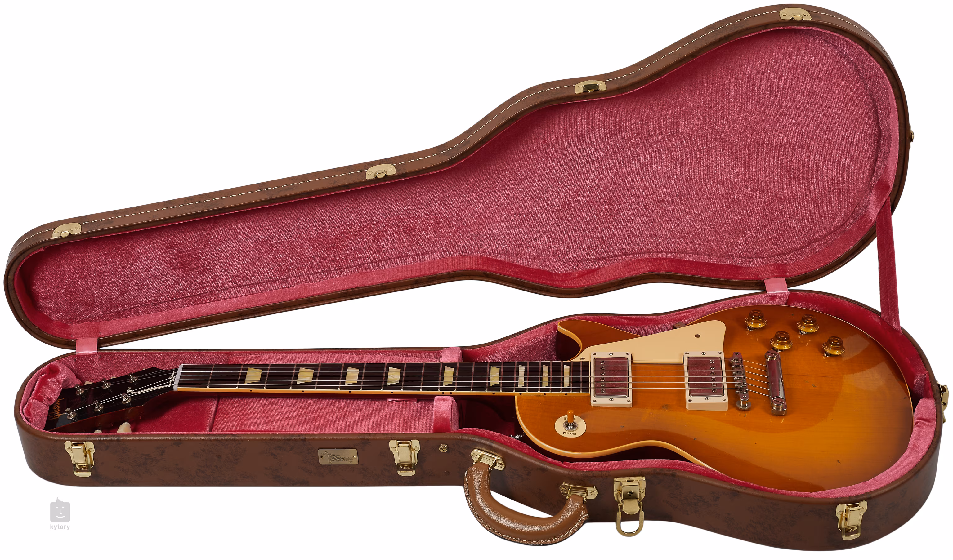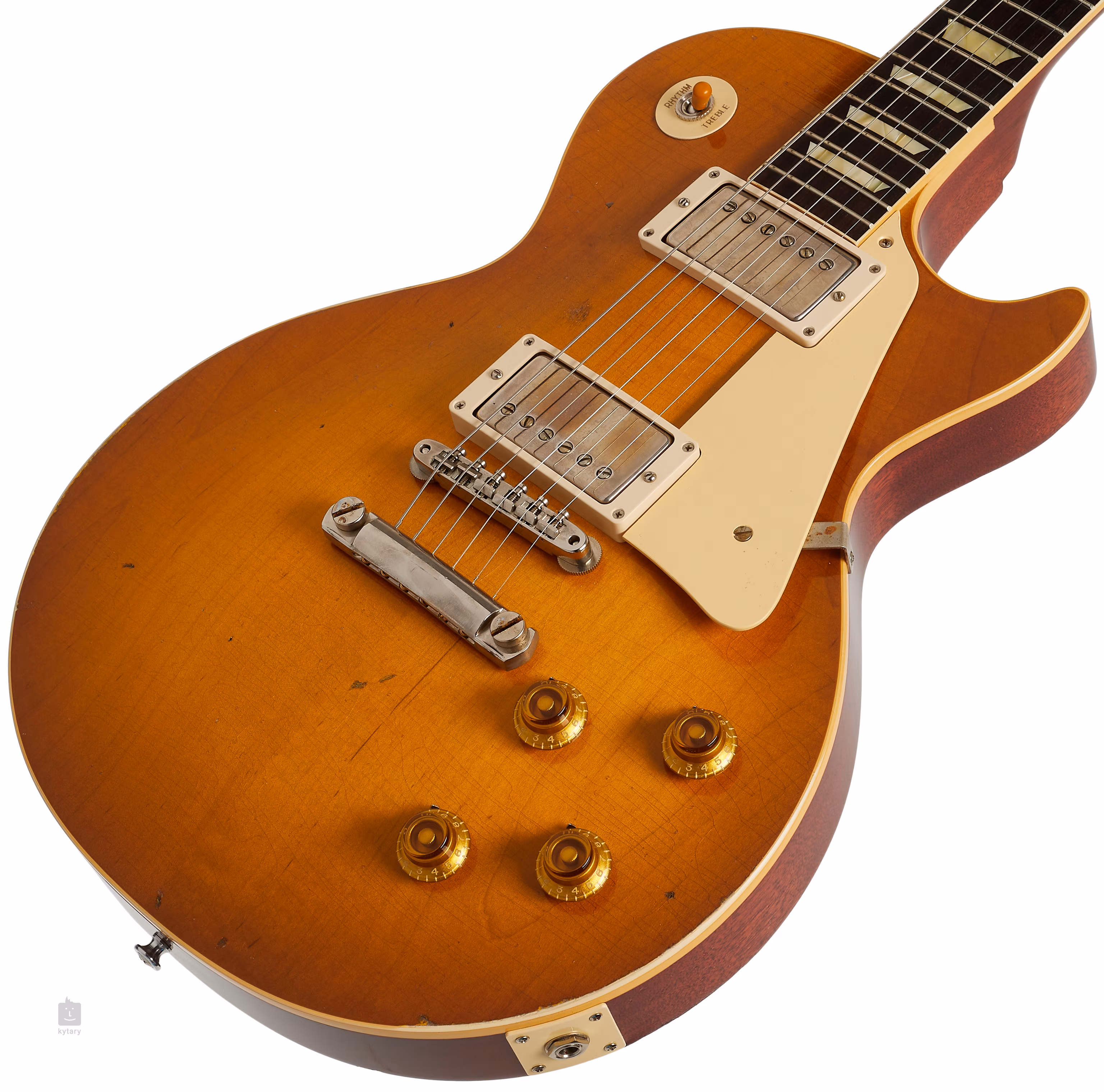Az 1958-as Les Paul Standard Reissue Light Aged Lemon Burst egy exkluzív elektromos gitármodell a Murphy Lab Collection sorozatból, amely teljesen új gitárokat kínál, amelyek megjelenésükben, tapintásukban és kivitelezésükben az évtizedes eredeti modelleket idézik. Ez nem csupán tisztelgés vagy tribute, hanem szó szerint az eredeti modellek klónja – a lézerrel beolvasott méretektől a színben pontosan megegyező sunburst bevonat árnyalatokig minden elem a legapróbb részletekig meg van örökítve. A Murphy Lab Ultra Light Aged felületkezelés és a „lightly aged” kivitelű hardver együttesen szimulálja az évtizedek alatt eltelt időt és az enyhe kopást, így a gitárnak a Gibson elektromos gitárok aranykorából származó eredeti modellek egyedi karakterét és hangulatát kölcsönzi. A gitár mahagóni testét két darab juharfából készült fedőlap borítja. A mahagóni nyakhoz, amely a korabeli „50s Rounded Medium C” profilú, paliszandrum fogólap van ragasztva, amelyen huszonkét bund található (Historic Gibson Narrow/Tall). A fogólapon a pozíciójelzők (Aged Cellulose Nitrate Trapezoid) segítik a tájékozódást. A hangszer hangzásáról két viaszmentes Custombucker Alnico 3 hangszedő gondoskodik. A hangszín a szokásos szabályozókkal állítható be. A húrok a Kluson Single Line hangolókulcsokban vannak rögzítve, és az ABR-1 húrtartón keresztül a húrtartóba futnak. A gitár tokban kerül forgalomba, eredetiségigazolással együtt.
