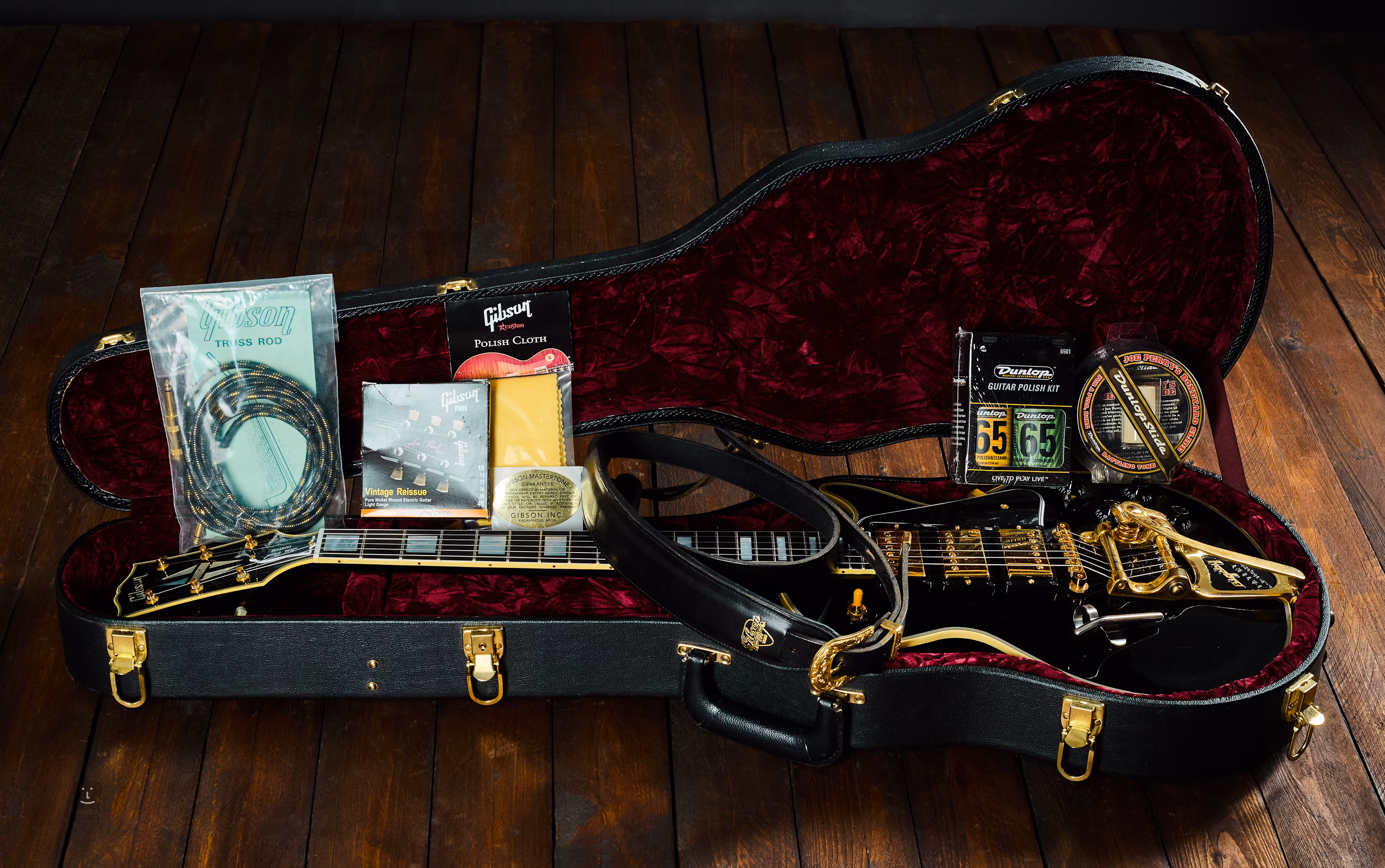 Eredeti Gibson Custom Shop tokkal és tanúsítvánnyal. Pluszban jár egy doboz eredeti Gibson ápolószerrel, valamint egy prémium Gibson heveder.