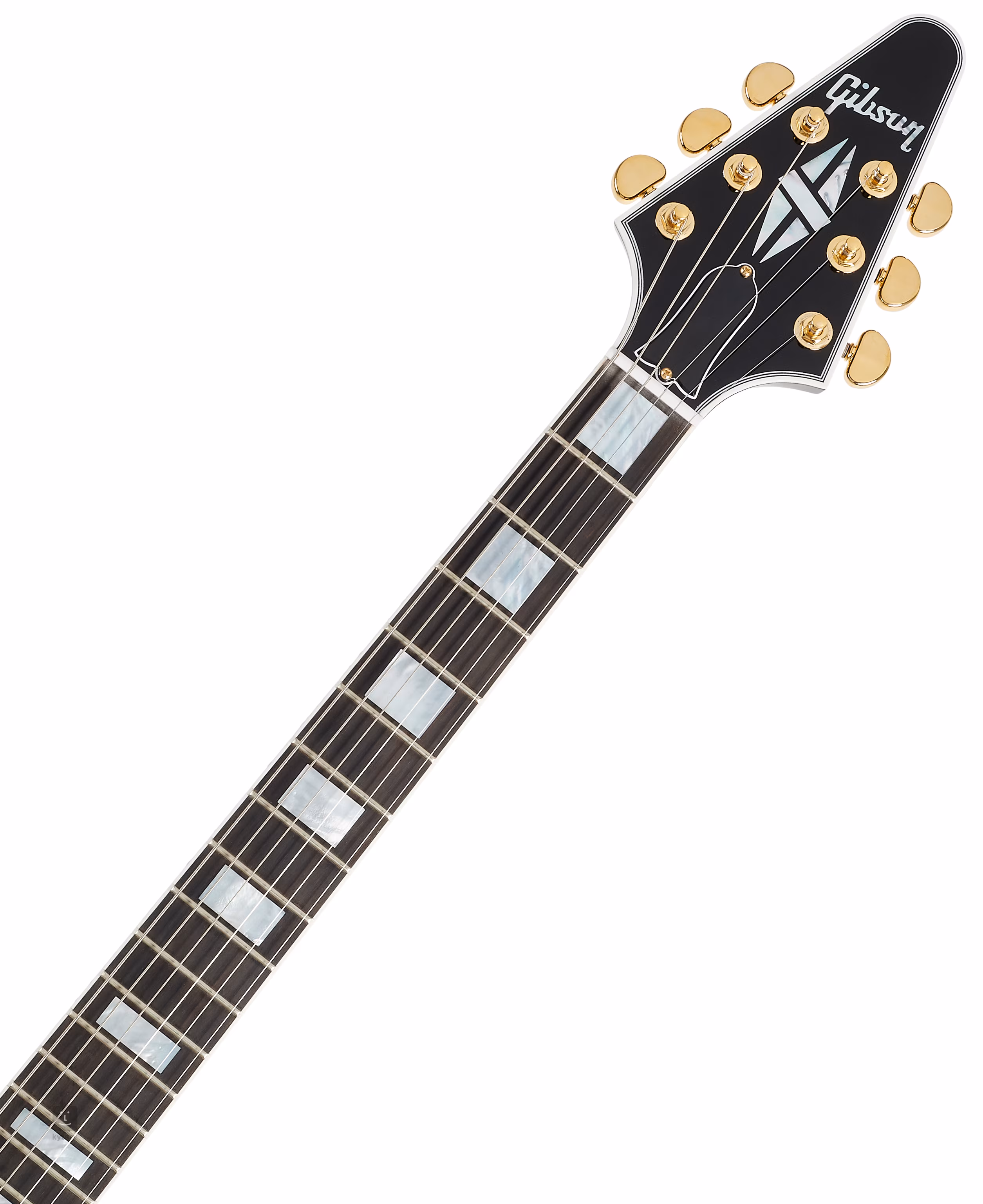Világszerte rock- és metálgitárosok ezrei esküsznek a Gibson Flying elektromos gitárra. A gitárforma egyik legradikálisabb kialakítását képviseli. A Flying V Custom w/ Ebony Fingerboard Gloss Ebony a Gibson Custom Shop egyik csúcsmodellje.