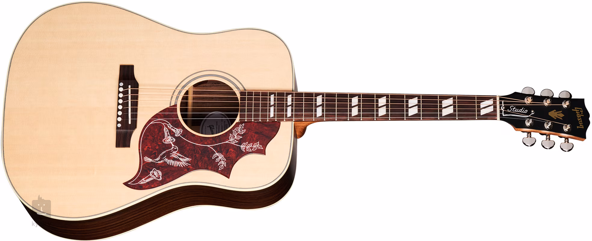 A Hummingbird Studio Rosewood Natural elektroakusztikus gitár a Gibson márka négyzetes vállú Dreadnought-kialakítások hosszú hagyományait folytatja. Ez egy standard testmélységű modell, amely első osztályú fákból készült, és az erősítés lehetőségének köszönhetően is sokféle alkalomra használható.