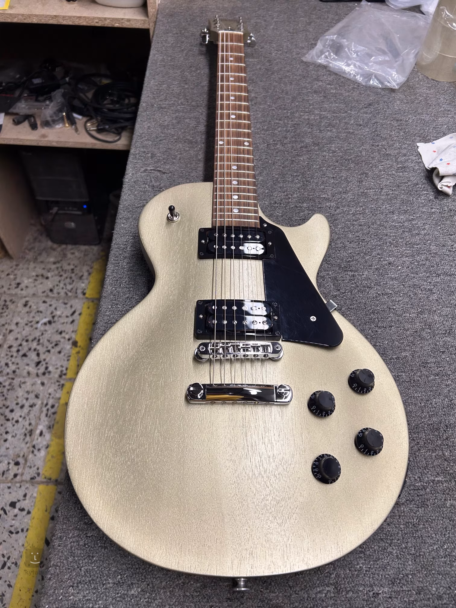 A Les Paul Modern Lite Gold Mist Satin teste szatén nitrocellulóz lakkozással és Gold Mist Satin színösszeállítással rendelkezik. A kényelmes "Slim Taper" profillal rendelkező mahagóni nyak egy indiai rózsafa fogólapra van ragasztva, amely huszonkét Medium Jumbo bunddal van felszerelve. A fogólap pozicionálását gyöngyházutánzatból készült pozicionáló pontok (Acrylic Dot) könnyítik meg.