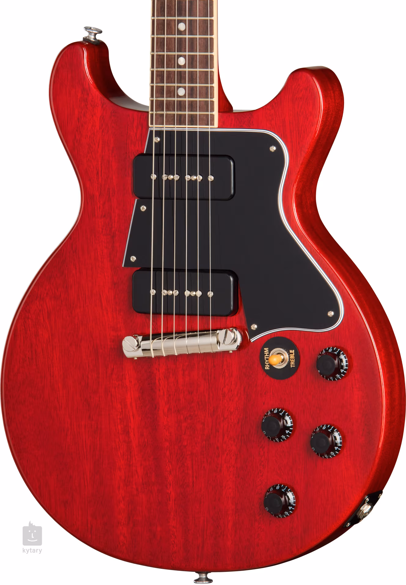 A Gibson amerikai márka Les Paul Special Double Cutaway Vintage Cherry elektromos gitár visszatér a 50-es és 60-as évek fordulóján megjelent, megfizethetőbb Les Paul Special modellek dizájnjához, amikor a test alakja double-cut-ra állt be, és a nyakérzékelő távolabb került a nyaktól (az eredeti, a nyakra ragasztott pickup csökkentette a nyak és a test közötti csatlakozás szilárdságát). A rokon „költségvetési” Junior modellektől a Les Paul Special gitárok két P-90 pickupmal és markánsabb esztétikai elemekkel, például a hangszer fején található gyöngyház logóval különböztetik meg magukat.