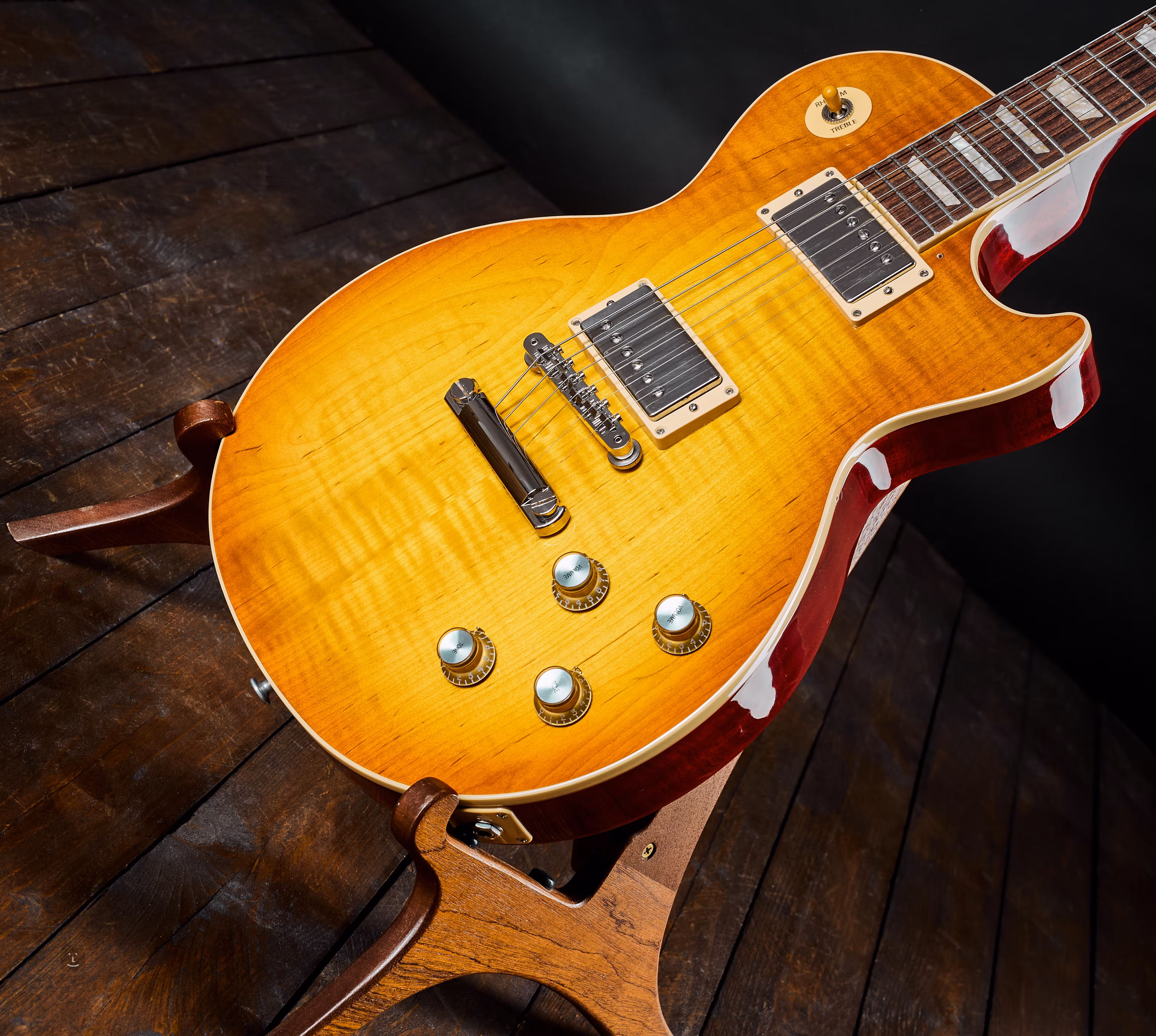 Les Paul 60s Standard, amelyet a Gibson „Demo” jelöléssel látott el (a fej hátsó oldalán található bélyegzővel), 2024-ben gyártott. Az első tulajdonosától került hozzánk, és eddig alig használták.