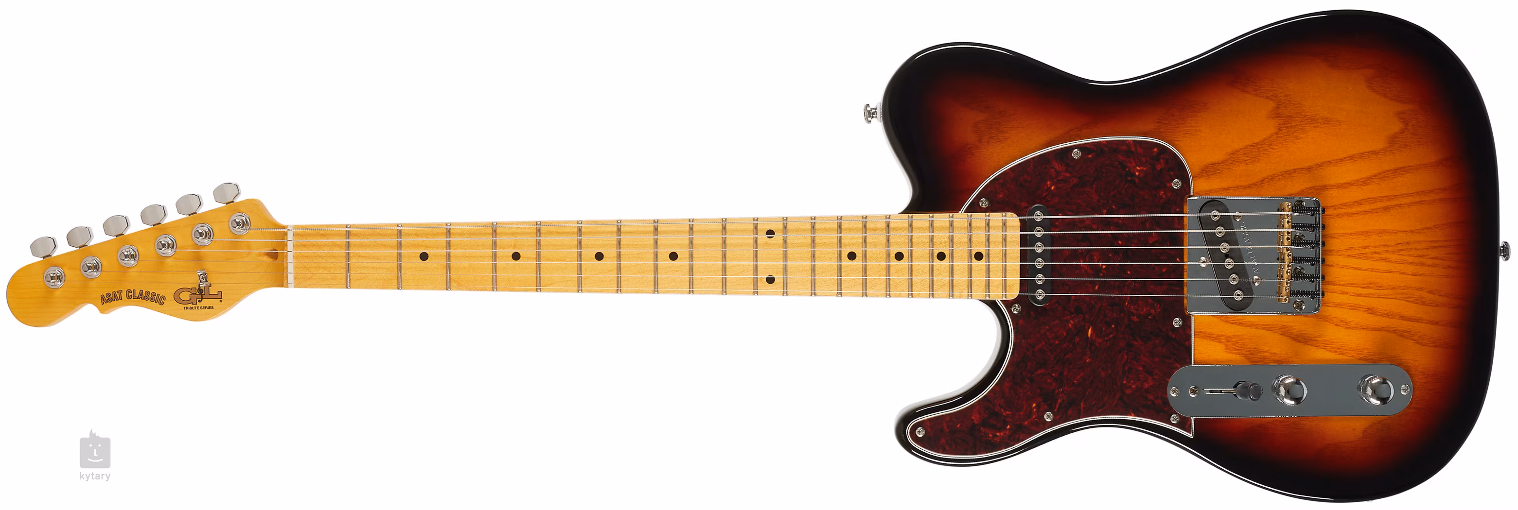 A G&L Asat Classic elektromos gitár dizájnja Leo Fender utolsó szava a klasszikus single-cut T dizájnra. A Tribute ASAT Classic Lefty 3-Tone Sunburst MP balkezes elektromos gitár a kedvezőbb árú Tribute sorozatból egy nyárfa testet tartalmaz kőris tetővel, csavarozott juhar nyak kellemes "Medium C" profillal és huszonkét Medium Jumbo nikkel bunddal ellátott juhar fogólappal.