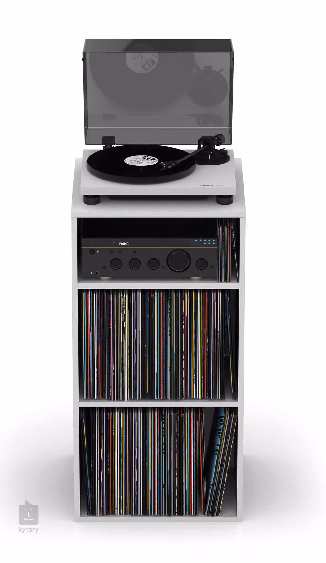 A Glorious Modular Mix Rack egy stílusos, háromszintes fa állvány 250 darab 12"-es és 250 darab 7"-es bakelit tárolására. A polcok mérete a zenei hordozók méretéhez igazodik, a felső polcra pedig erősítőt vagy kiegyenlítőt is elhelyezhet. A szekrény könnyen szétszedhető, tökéletesen szolgál majd egy modern otthon designbútoraként vagy DJ asztalként a lemezjátszó alatt.
