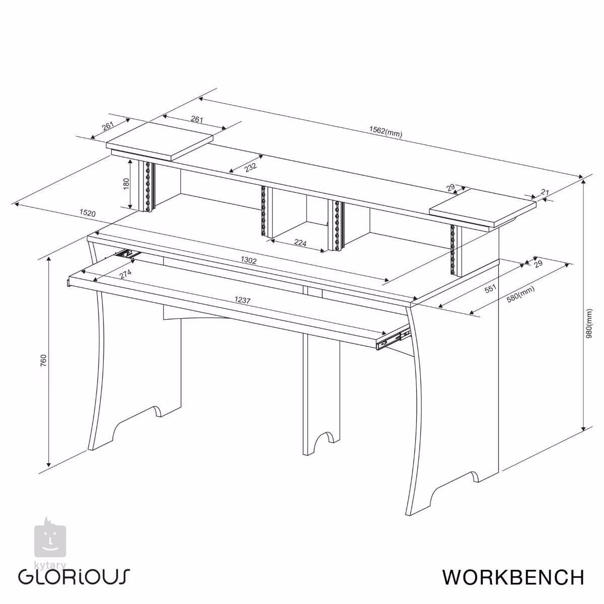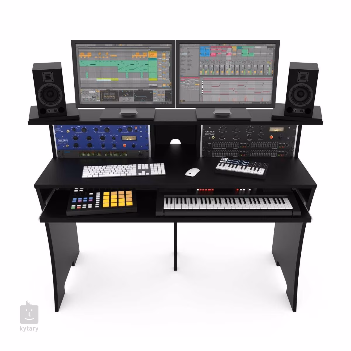 A Workbench az ideális munkaállomás a projekt- és otthoni stúdiók számára, amely a zenei produkciót teljesen magától működőképessé teszi. Stabil fa szerkezetű, amely a zenei alkalmazásokkal való munka során az ergonómiára és az intelligens helykihasználásra helyezi a hangsúlyt. Van egy kihúzható billentyűzettálca, forgatható állványok a monitorok meghallgatásához vagy 2 19 hüvelykes állvány a különböző interfészek telepítéséhez.