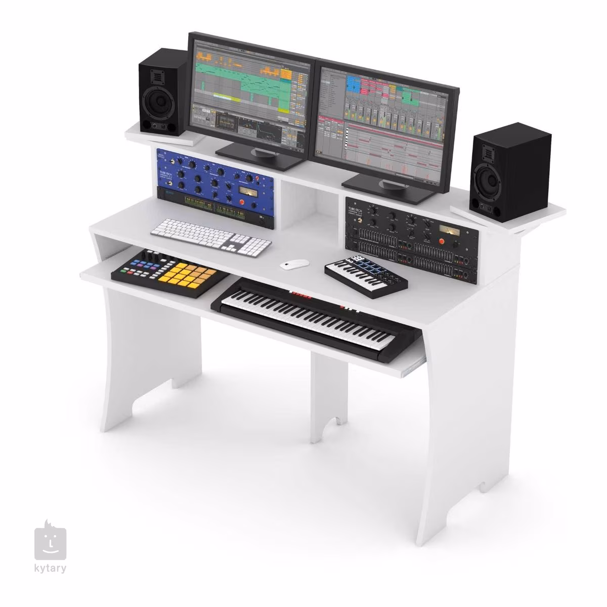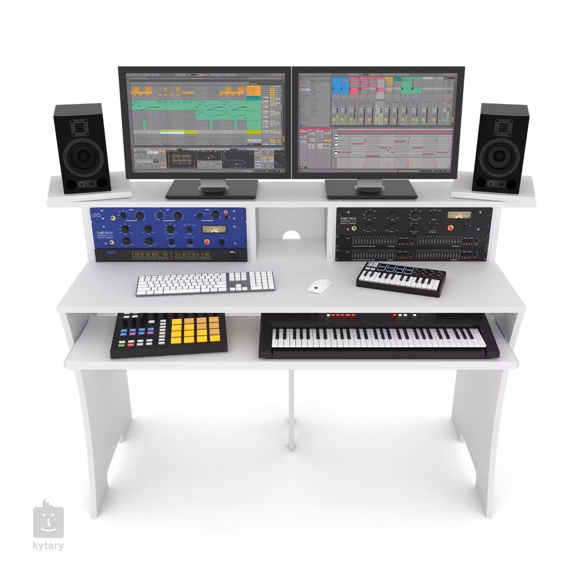 A Workbench az ideális munkaállomás a projekt- és otthoni stúdiók számára, amely a zenei produkciót teljesen magától működőképessé teszi. Stabil fa szerkezetű, amely a zenei alkalmazásokkal való munka során az ergonómiára és az intelligens helykihasználásra helyezi a hangsúlyt. Van egy kihúzható billentyűzettálca, forgatható állványok a monitorok hallgatásához vagy 2 19 hüvelykes állvány a különböző interfészek telepítéséhez.