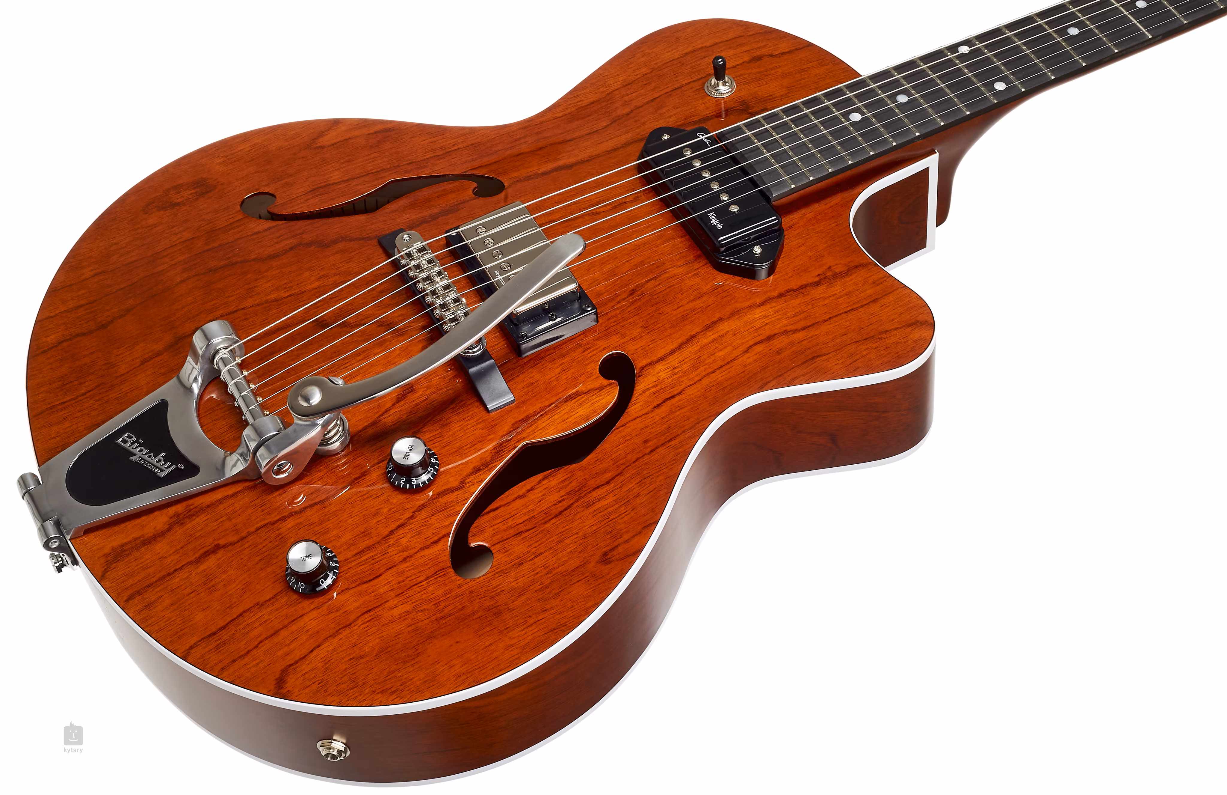 A húrok a Graphtech nullázó fekvésen keresztül a gyári hangolókulcsokhoz vannak rögzítve, amelyek áttételi aránya 18:1 (basszus oldal) és 26:1 (treble oldal), valamint a Tune-O-Matic húrtartóhoz és a Bigsby tremolóhoz. A stílusos dizájnt hangsúlyozza a Havana Brown színű festés, a fedőlap fényes felülete és a hátsó lap és a karok félig fényes felülete.
