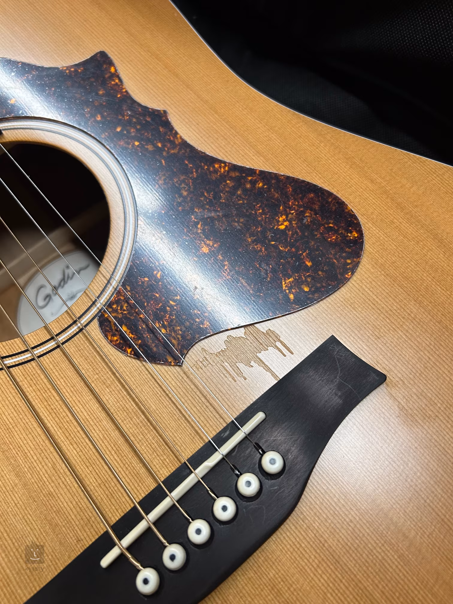 A hangszer akusztikus hangjának hű átvitelét az L. R. Baggs Anthem elektronika garantálja a szabadalmaztatott Tru-Mic technológiával, amely a mikrofonos hangszedőt és az Element alszekrényes hangszedőt kombinálja. A kezelőszervek diszkréten a gitár hanglyukában vannak elhelyezve. A húrokat a cég 16:1 arányú nyitott fogaskerékbe és ébenfa fogólapba szerelték. A hangszer stílusos kialakítását a testkötés, az egyszerű rozetta, a cég logója a fejlécen és a teknőspáncél utánzatból készült koptatóhéj emeli ki.