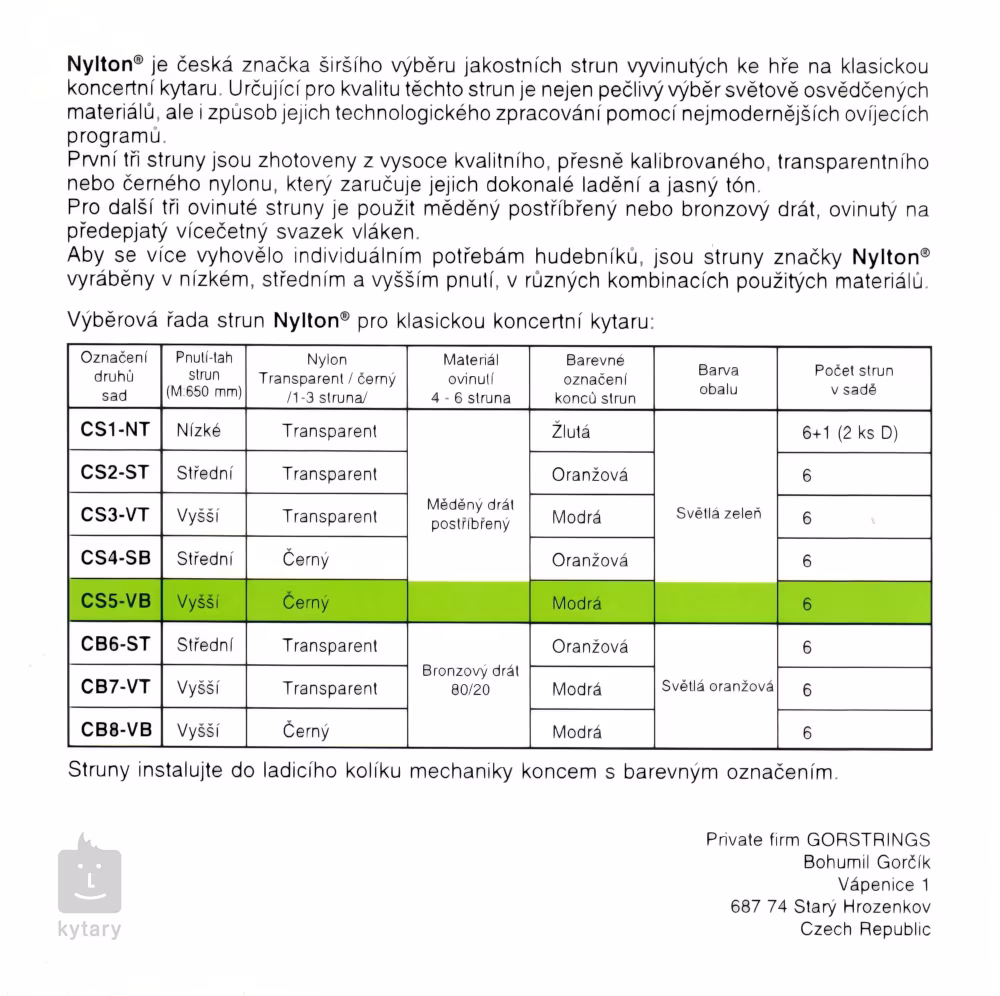A cseh Gorstrings gyártó Nylton sorozatának klasszikus gitárhoz való neylon húrjai a legmodernebb technológiával, világszerte bevált anyagokból készülnek. Alapjuk a kiváló minőségű, pontosan kalibrált fekete nejlonmag, amelyet a basszushúroknál népszerű ezüstözött rézzel tekernek körbe - ez adja a húrok meleg, frekvenciakiegyenlített hangzását, amely tökéletes otthoni gyakorláshoz, koncertezéshez és stúdiófelvételekhez. A húrokat a legjobb cseh kézművesek készítették. Ez a készlet magasabb feszültséget kínál, amely fokozza a hang élességét és tisztaságát.