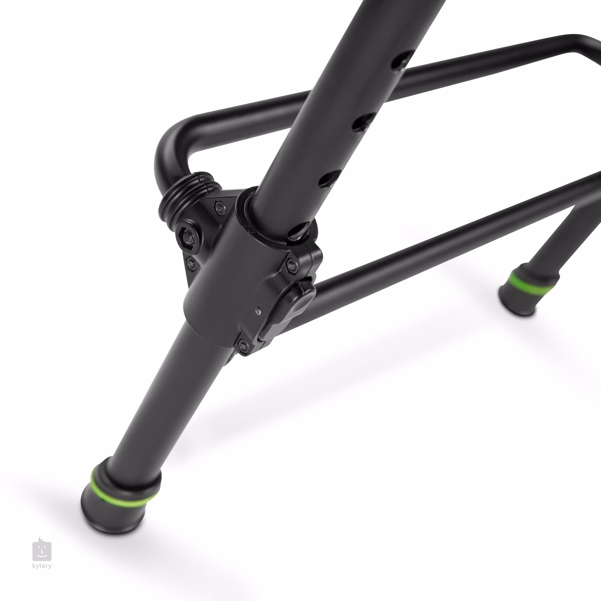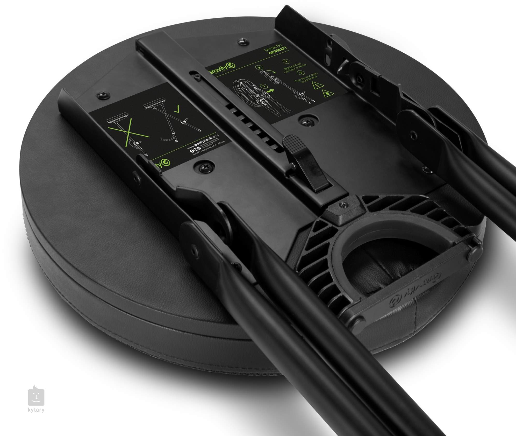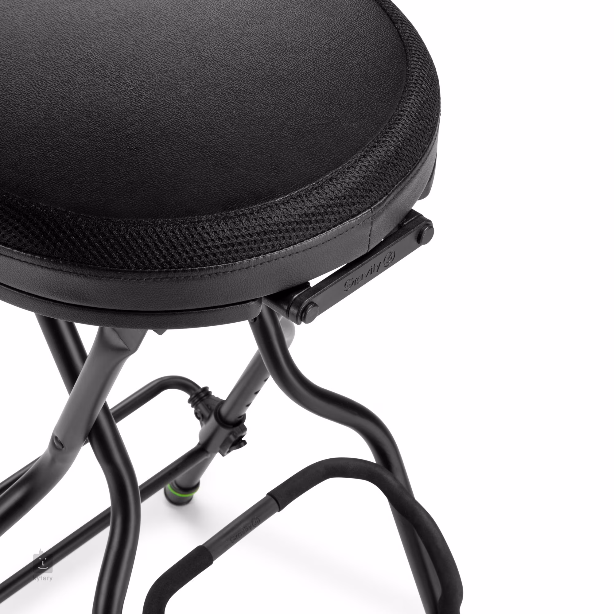 Ez az okosan megtervezett gitárszék a kényelmes ülés mellett olyan dolgokat is kínál, mint a gitártartó és az állítható lábtartó. A 340 mm átmérőjű ülés szövet és kiváló minőségű műbőr kombinációjából készült, így csúszásmentes és lélegző. Az állvány szerkezete ezután öntött alumínium és acél kombinációjából készült, ami nemcsak szilárdságot és stabilitást, hanem könnyű súlyt is biztosít. Szükség esetén a szék kompakt méretűre összecsukható, így tökéletesen alkalmas a gyakori utazáshoz. Oldalán egy kihúzható gitártartót talál, amely szükség esetén teljesen elrejthető, az állvány a legtöbb szabványos akusztikus és elektromos gitárt könnyedén és biztonságosan képes megtartani. A szék másik különlegessége az állítható lábtartó (180-300 mm között), amely mindenkor kényelmes játékot garantál.
