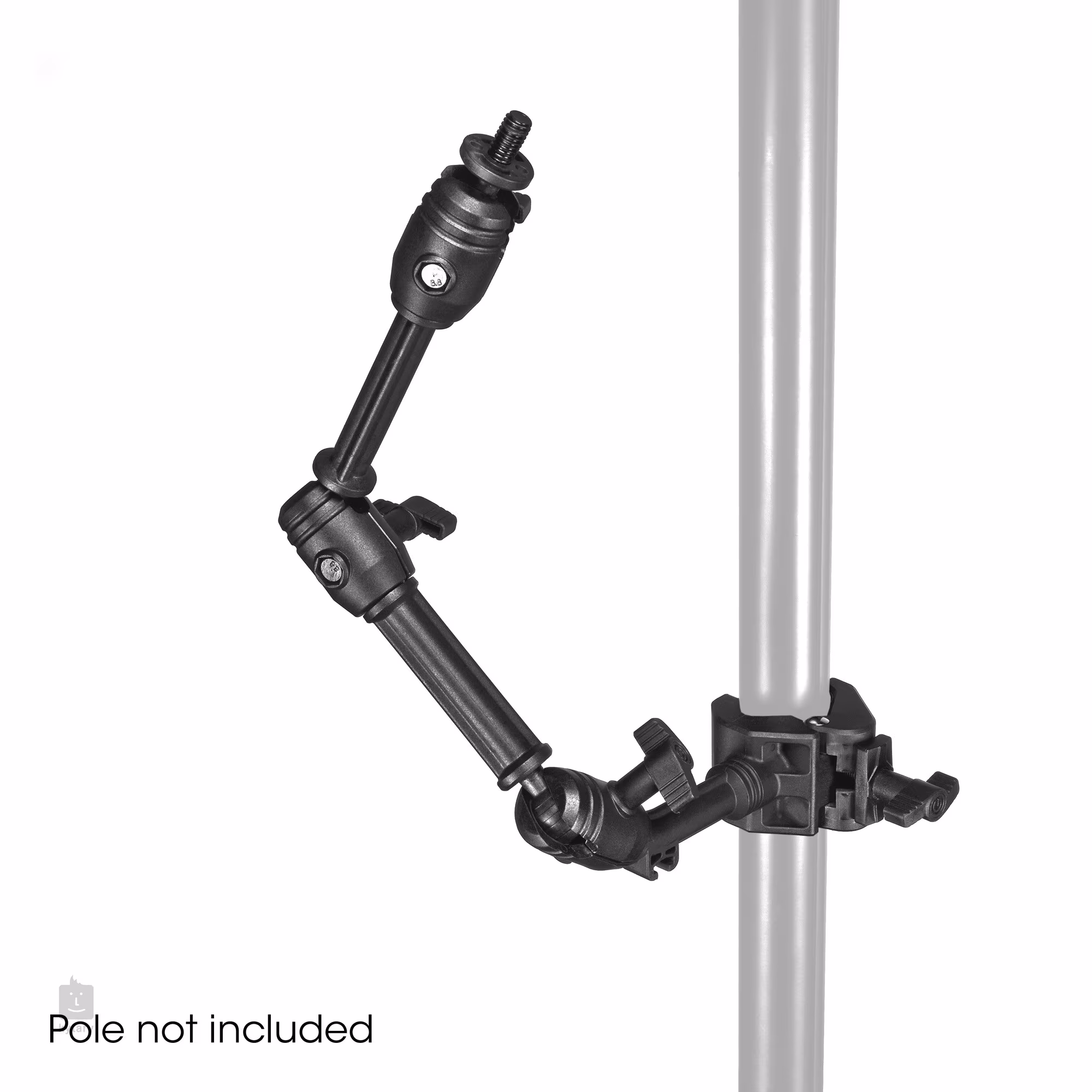 Mobil telepítésekhez alkalmas, állítható mikrofonkar három 360 fokos forgatható csuklóval az optimális használat érdekében. A kar bármilyen 15-35 mm átmérőjű állványra vagy hardverre rögzíthető. A 3/8"-os menetre ezután mikrofon-, laptop- vagy mobiltelefon-rögzítőket rögzíthet. A kar tartós műanyag és poliamid kombinációjából készült.