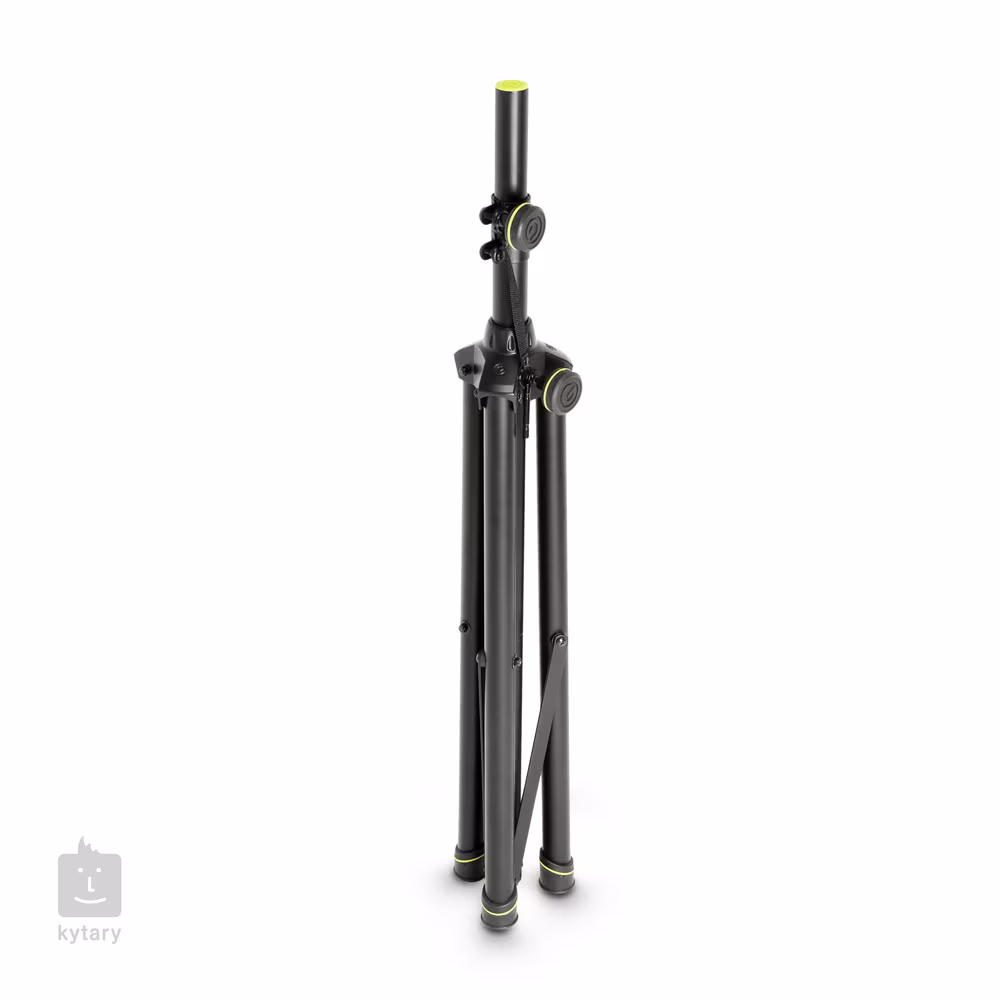 A német Gravity cég klasszikus, háromlábú hangszóróállványa tartós anyagból készült, ugyanakkor nagyon könnyű súlya révén könnyen szállítható. A vállalat többi állványához hasonlóan ez is ergonomikusan kialakított, hőre lágyuló gumival borított csavarokkal rendelkezik, amelyek lehetővé teszik a kívánt magasság nagyon gyors és kényelmes beállítását. A magasságállító csavarból nem hiányzik a biztonsági zár, a mechanizmus pedig acélból készült, így szinte elpusztíthatatlan.
